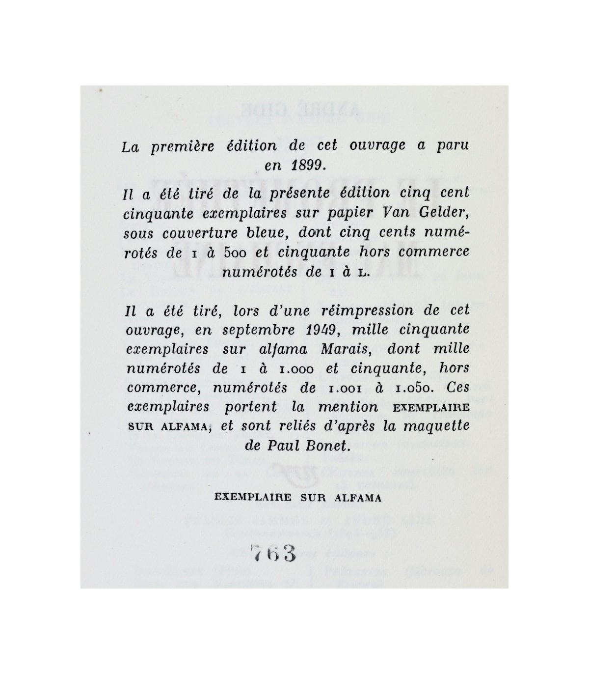Cartonnage crème décoré, relié d’après la maquette de Paul Bonet. Un des exemplaires numérotés, celui-ci n°763.