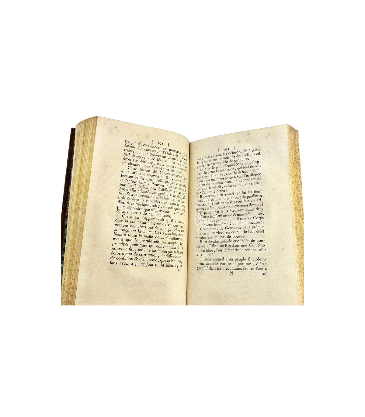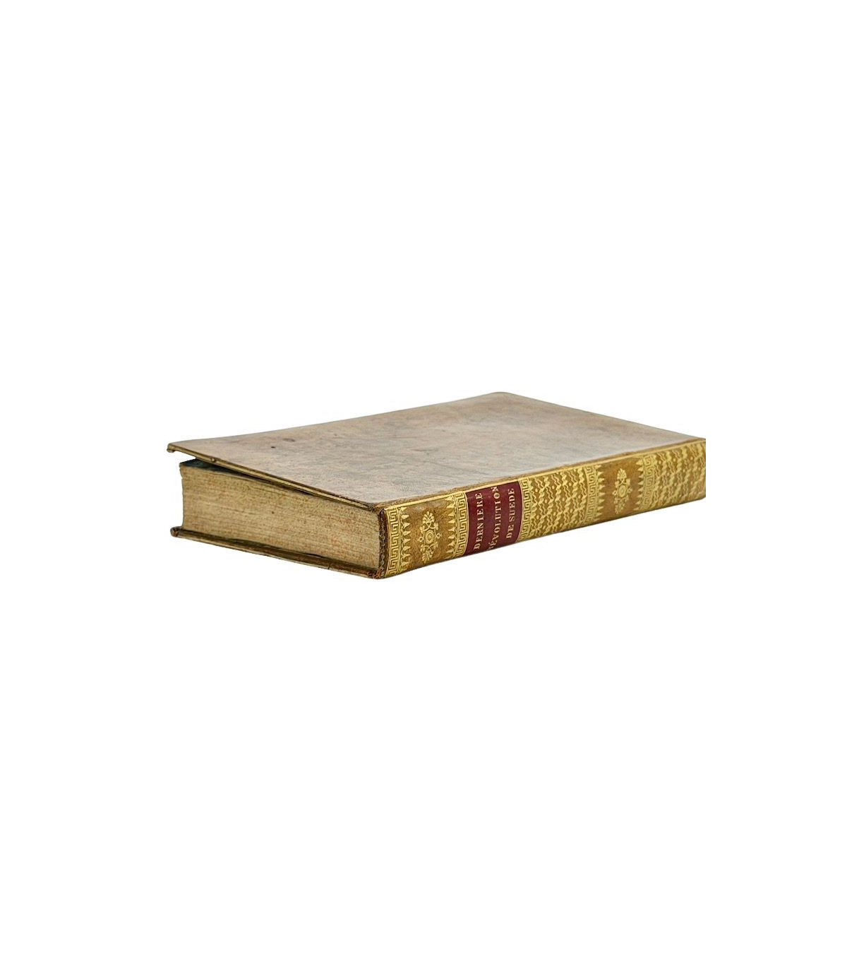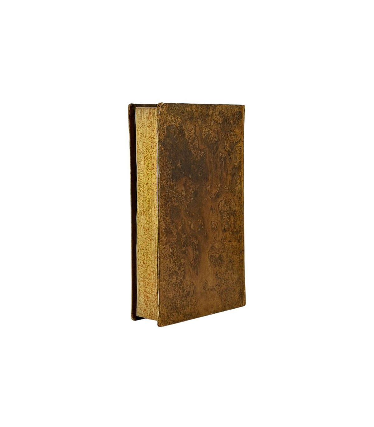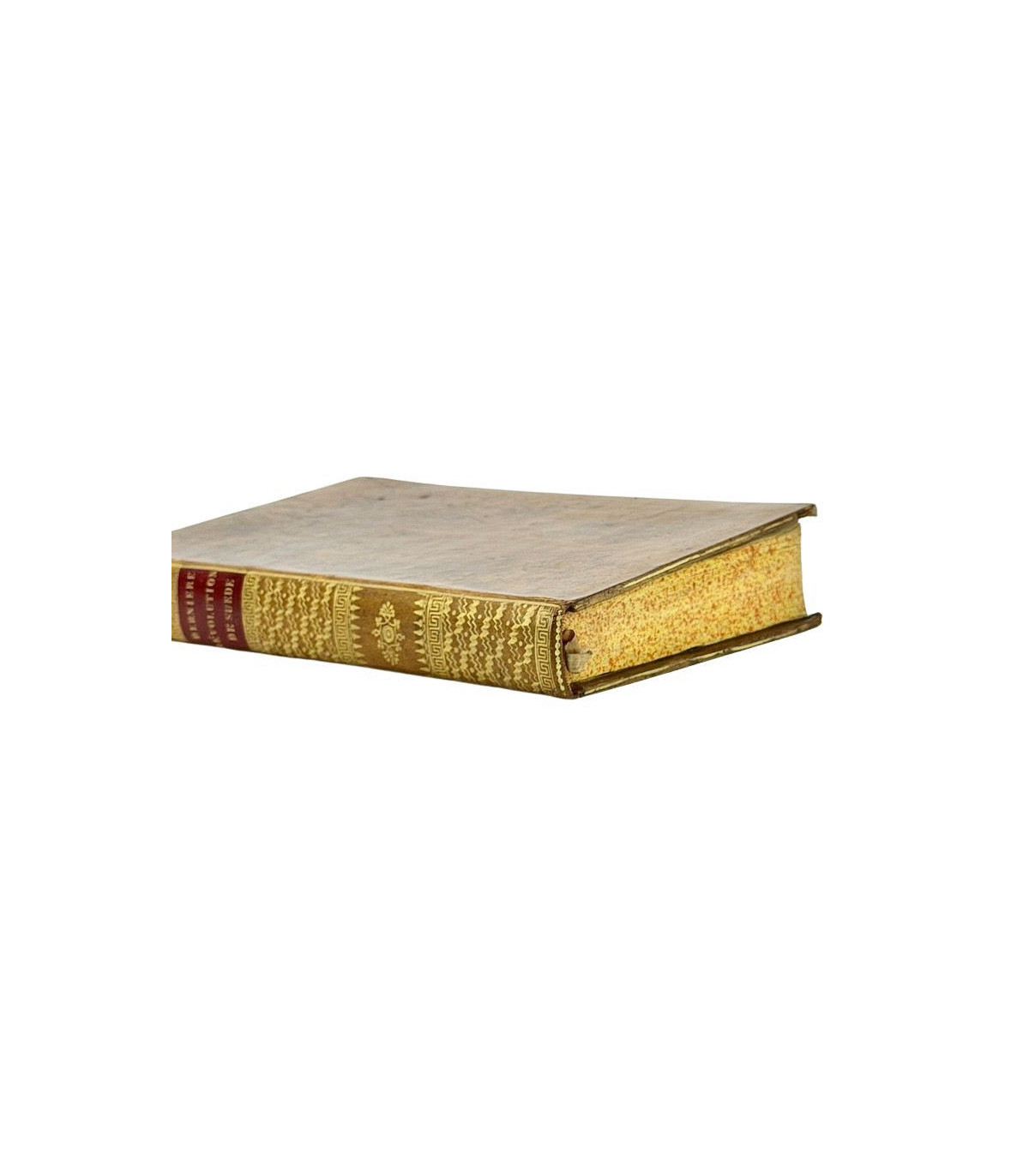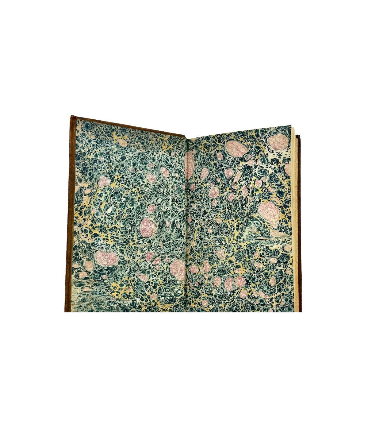 Plein veau fauve, dos lisse orné de fers dorés, pièce de titre de cuir rouge, filet doré parcourant les coupes, doublures et gardes de papier marbré, tranches mouchetées rouges (reliure d’époque).