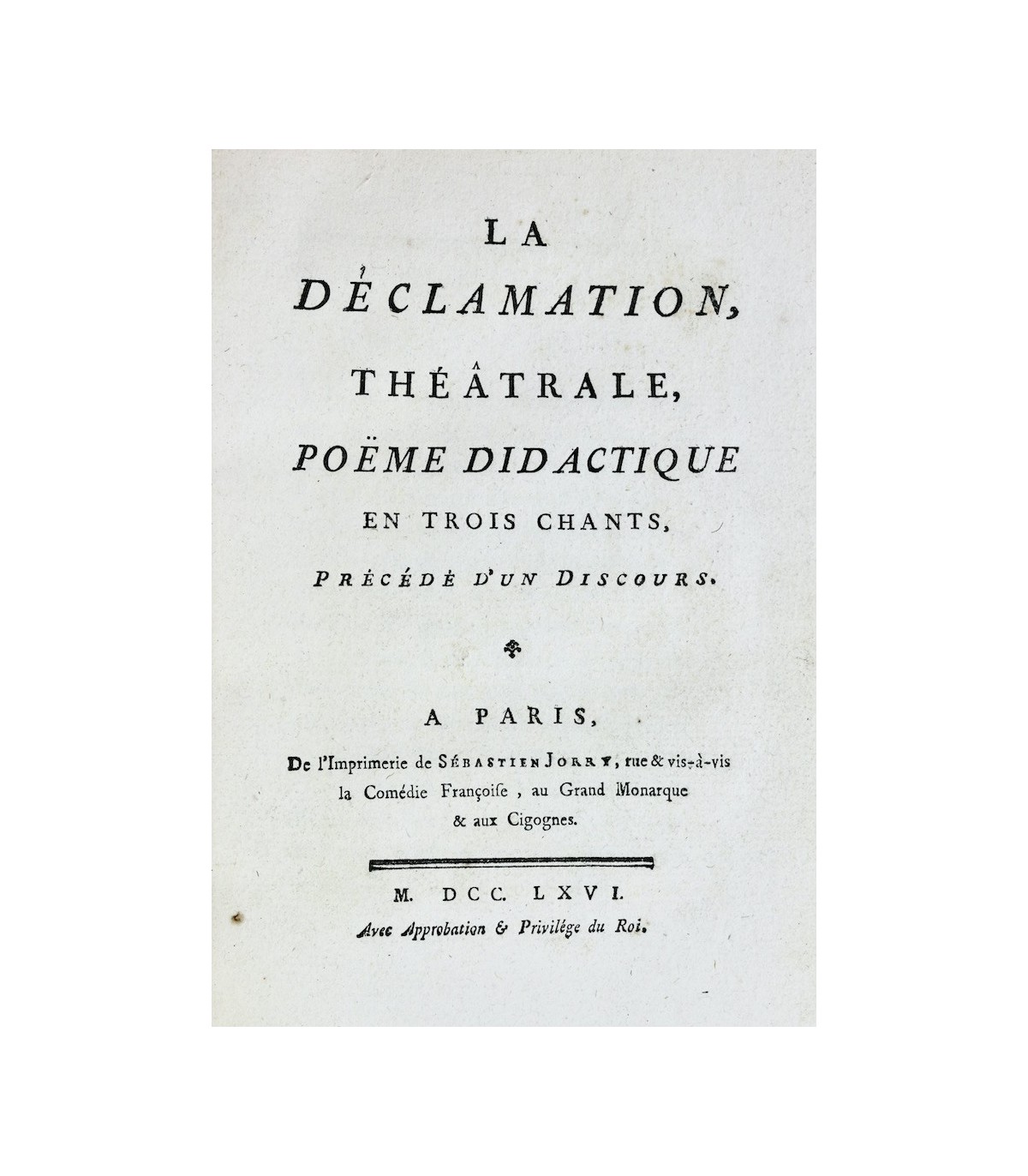 La Déclamation Théâtrale, Poëme didactique en trois chants, précédé d'un discours