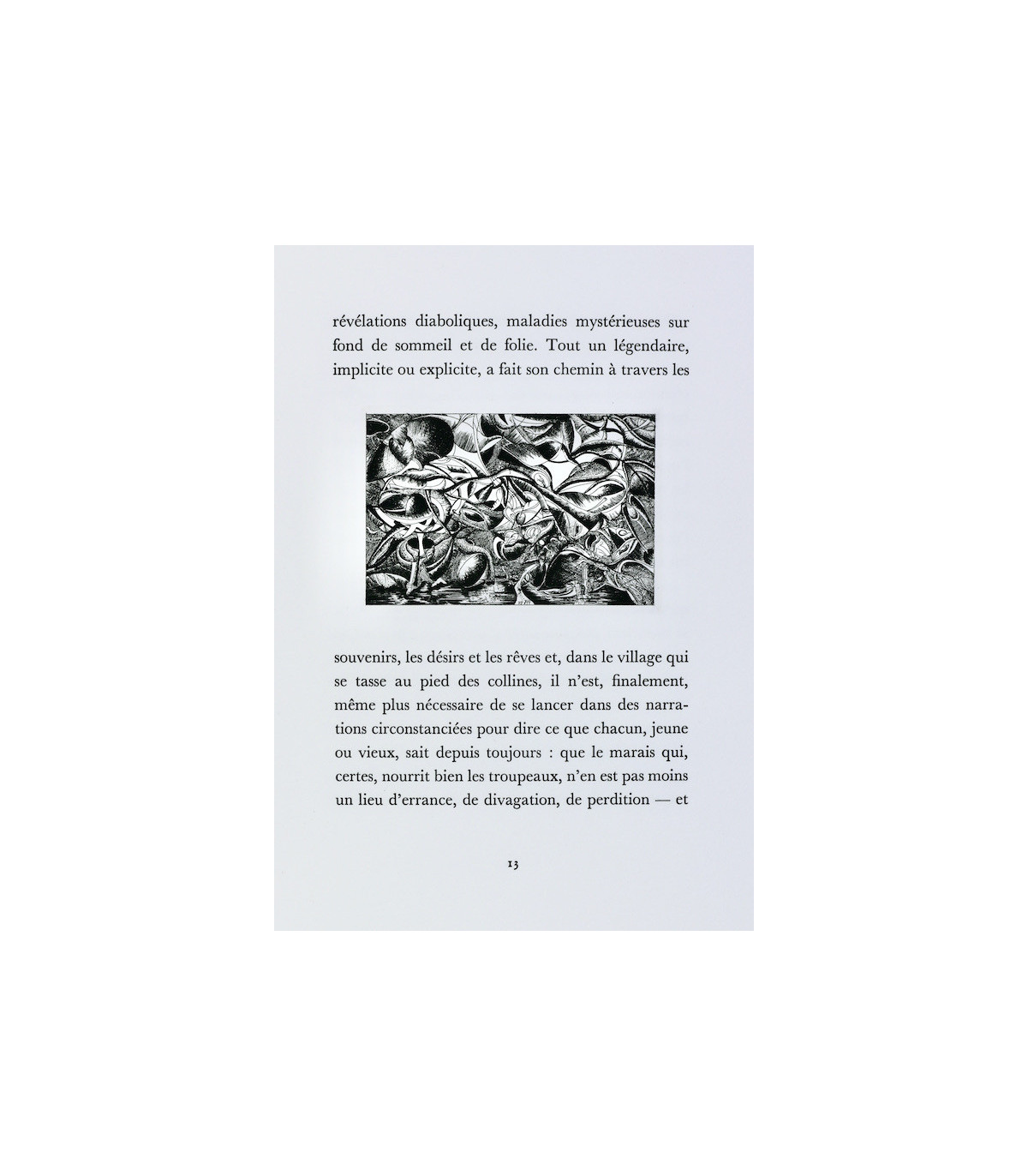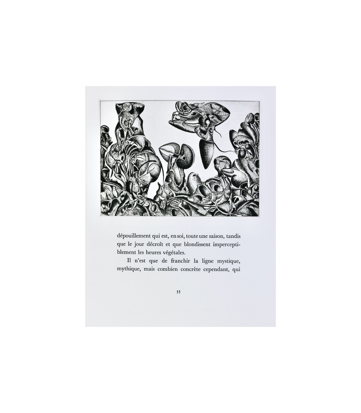 In-4 (28cm x 19,5cm) de 55-[4]pp. Tirage à 165 exemplaires numérotés sur vélin de Rives, dont 35 exemplaires hors-commerce. En feuilles sous couverture imprimée à rabats, emboitage de toile rouge.