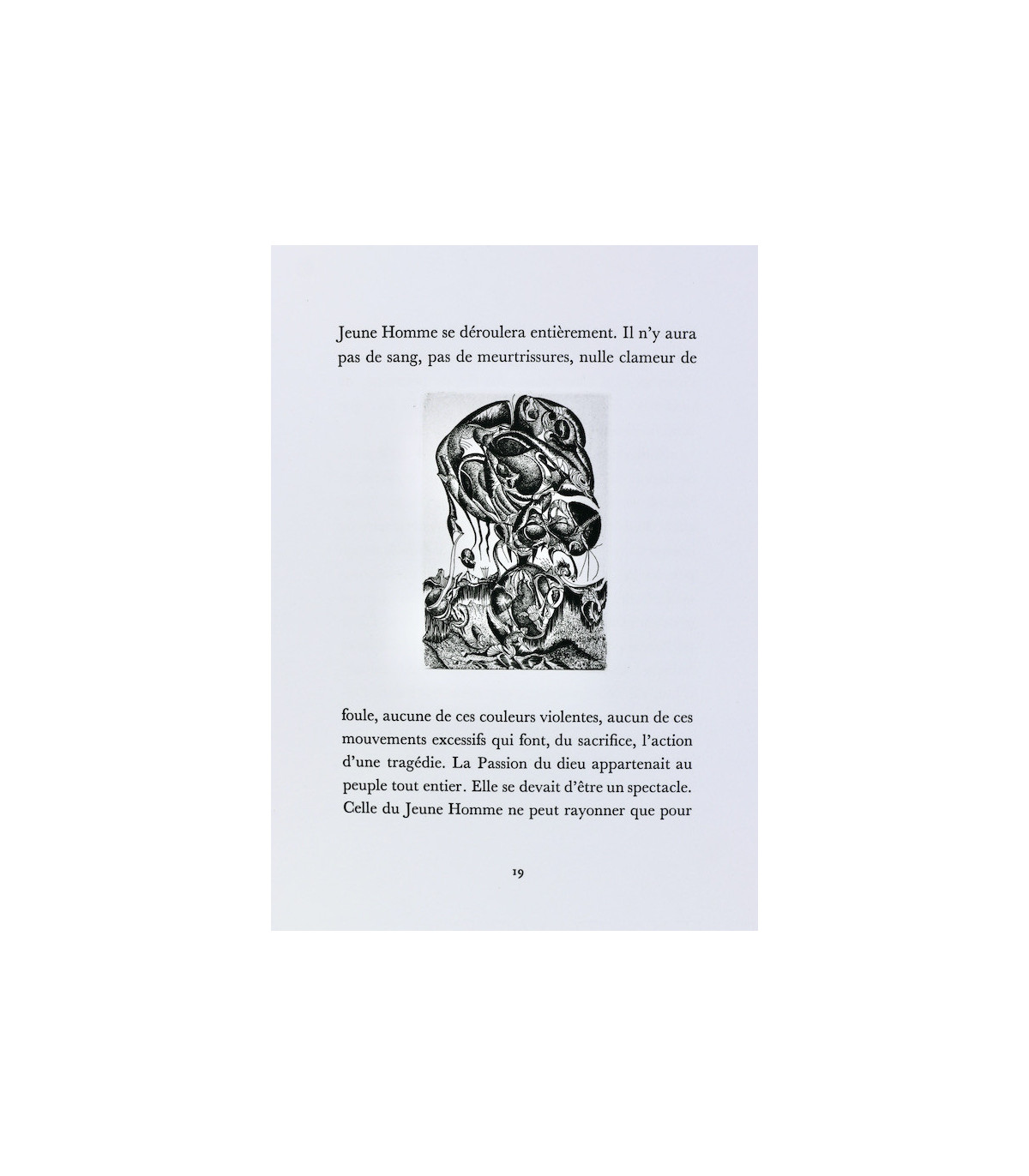 Édition originale illustrée d'un frontispice gravé à l'eau-forte par Joan Ponç et de 13 eaux-fortes de J.G. Gwezenneg, dont un bandeau, 10 in-texte et 2 hors-texte. Un des exemplaires numérotés, celui-ci n°126, imprimé spécialement pour un sociétaire.