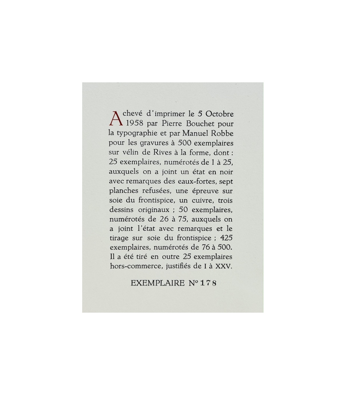 In-8 (24,5cm x 16,6cm) de 166-[1]pp. Tirage à 525 exemplaires numérotés sur vélin de Rives.