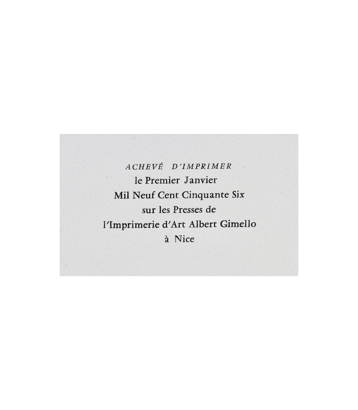 Nice, Imprimerie d’Art Albert Gimello, 1956