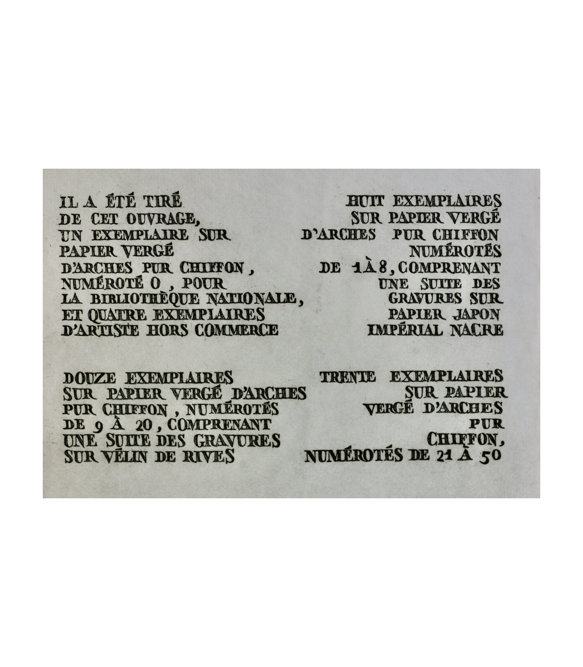 In-8 carré (20,3cm x 20,3cm) Tirage limité à 55 exemplaires numérotés. En feuilles sous couverture illustrée et rempliée, chemise et étui.