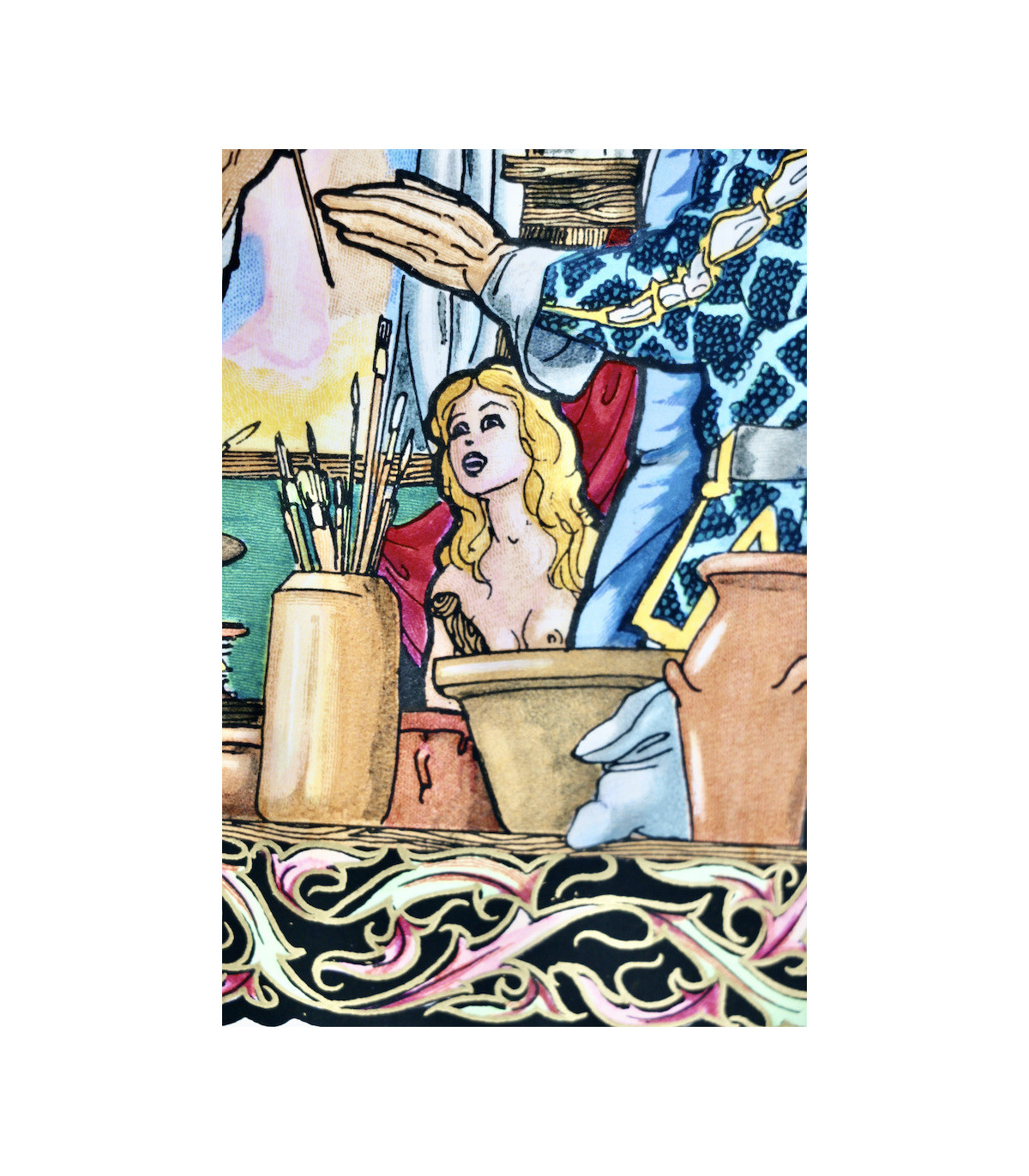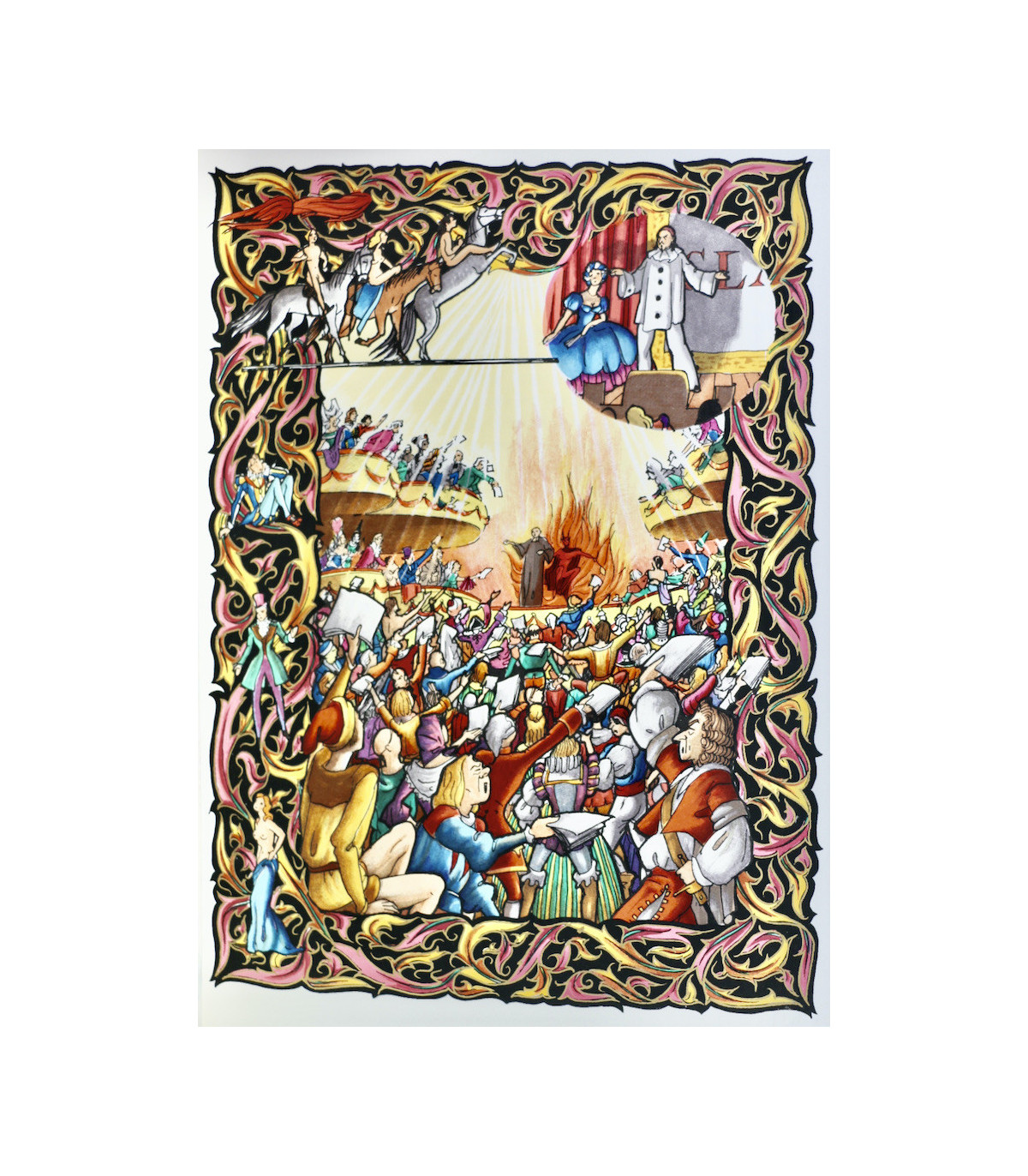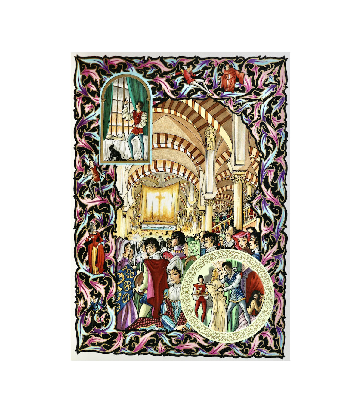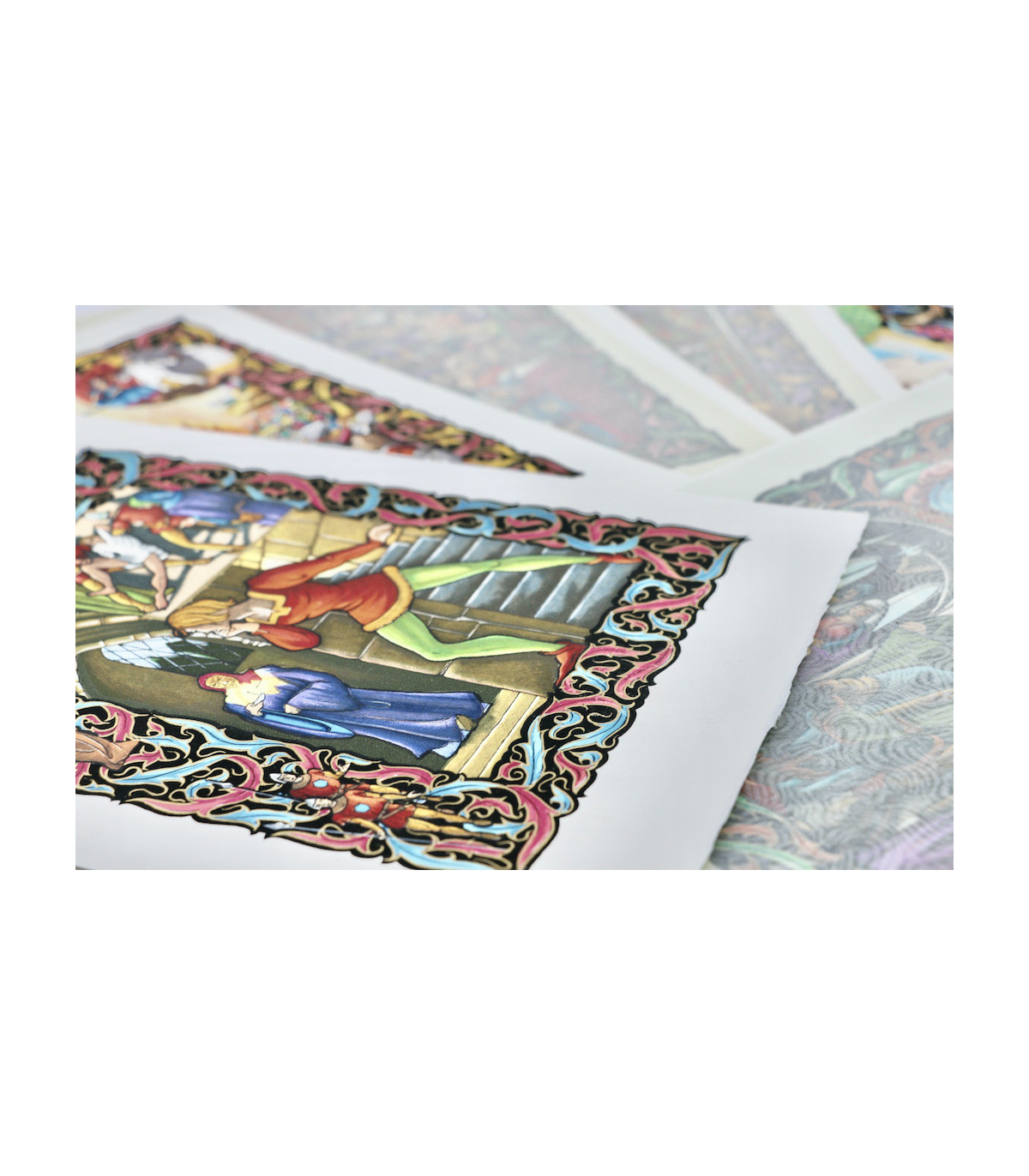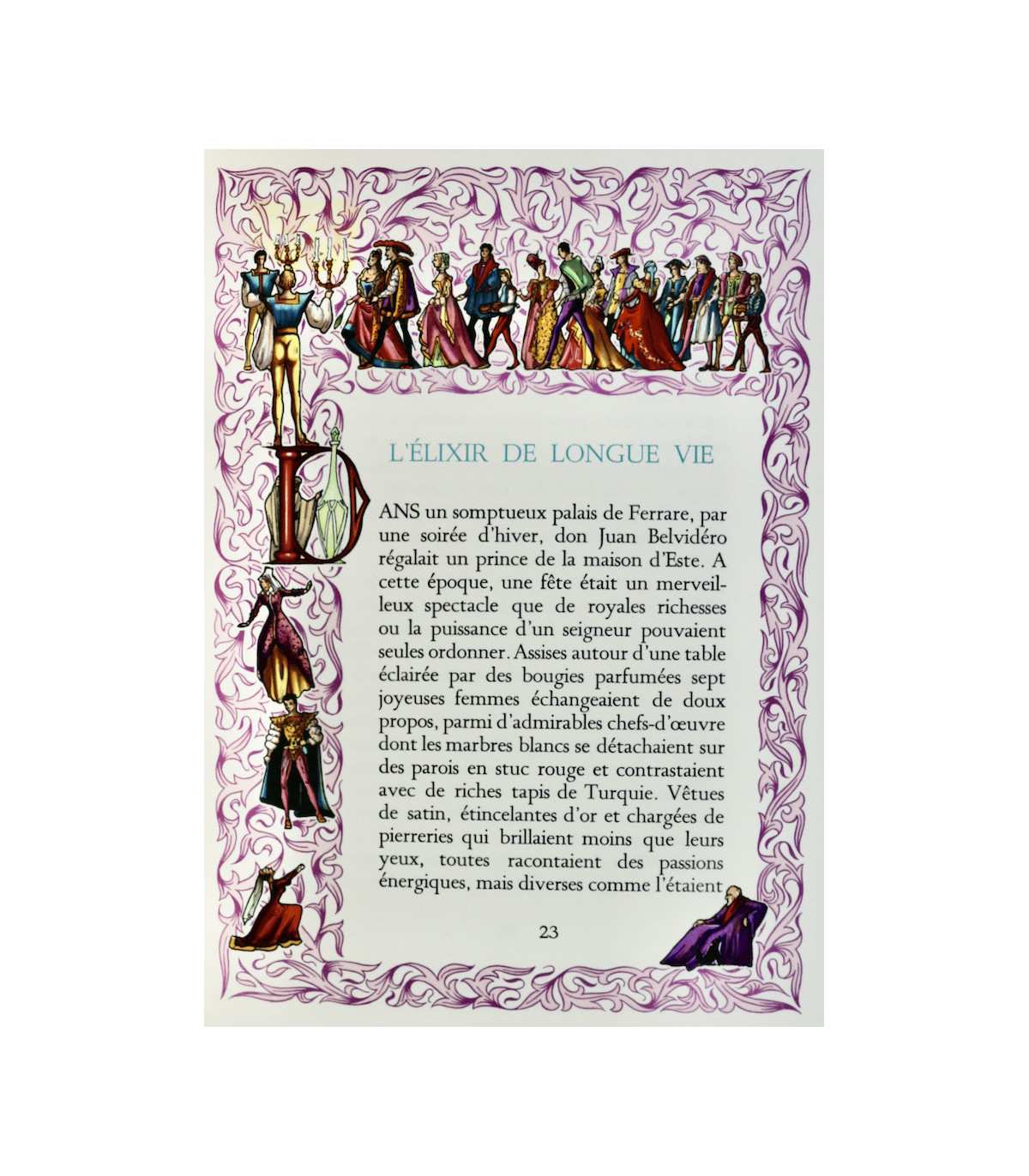 Ouvrage illustré par Arnaud Ansaldi de nombreuses compositions reproduites en couleurs au pochoir. Un des 3 exemplaires d’artiste comportant, pour chaque volume, une illustration originale en couleurs, 5 dessins d’étude de l’artiste, une suite en couleurs des hors-texte et une suite en pourpre des hors-texte, bien complet de son certificat d’authenticité. Il manque à cet exemplaire l’illustration originale en couleurs sur parchemin véritable encadrée annoncée à la justification.