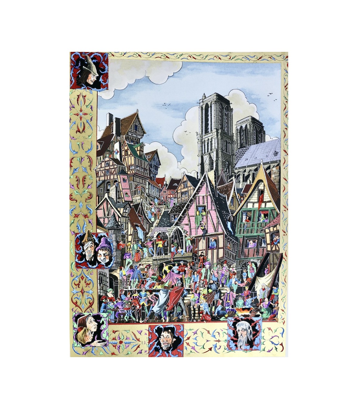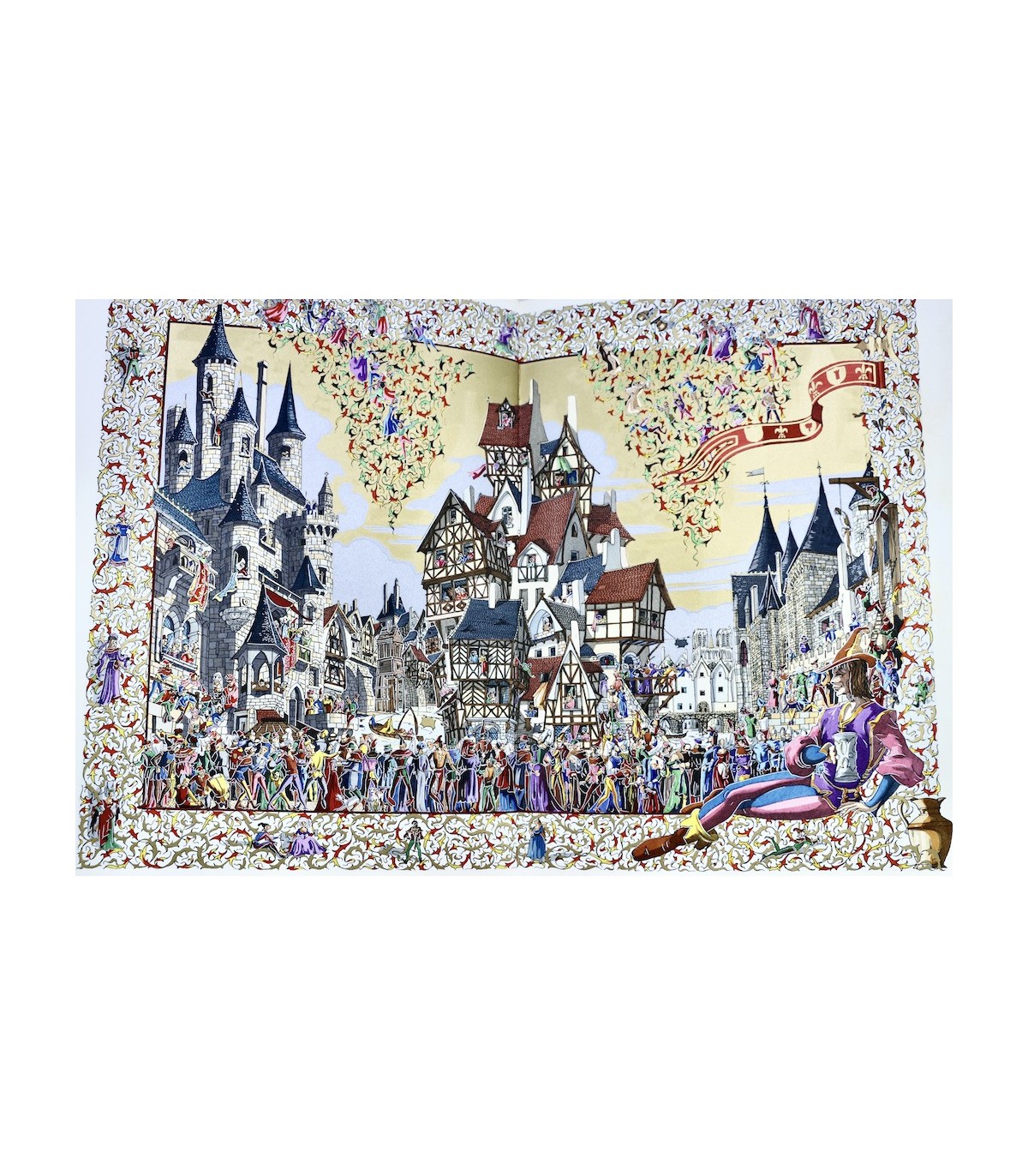 Ouvrage illustré de 83 compositions en couleurs par Arnaud Ansaldi, dont une sur double page, 10 hors-texte, 67 illustrations encadrant les textes et 5 titres ornés. Un des 988 exemplaires numérotés sur pur chiffon BFK de Rives, celui-ci n°704, enrichi d’un grand dessin original signé relié en début d’ouvrage, bien complet de son certificat de garantie.