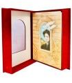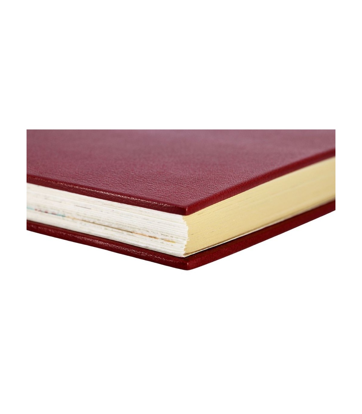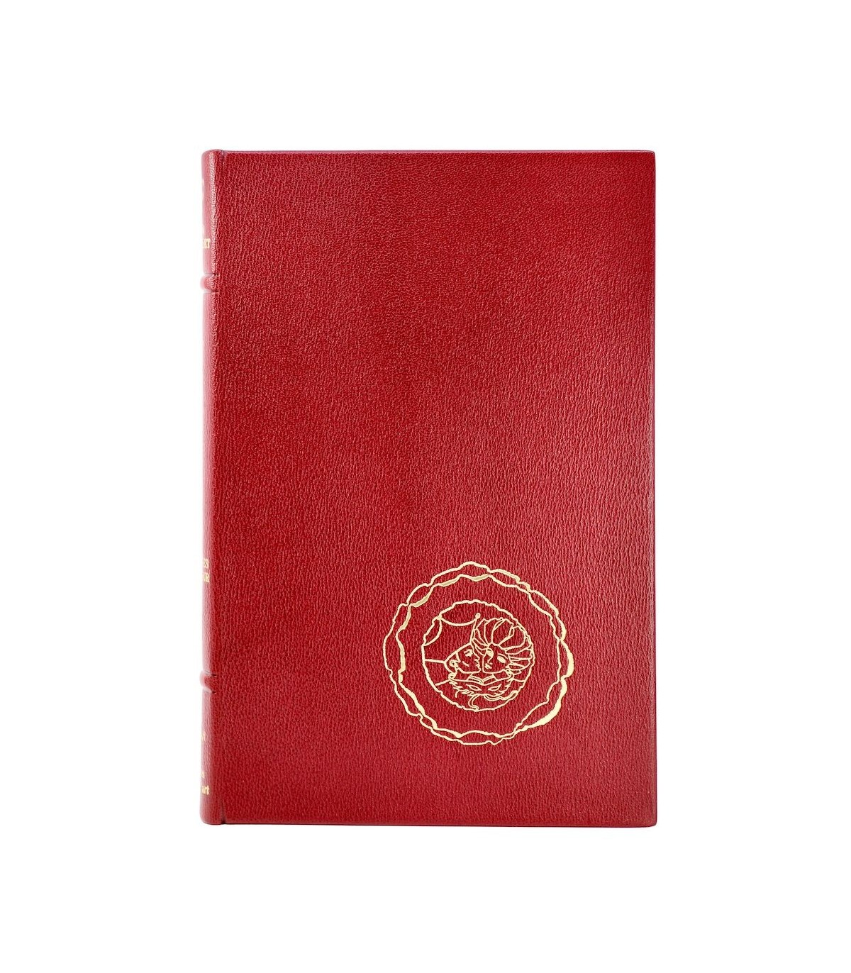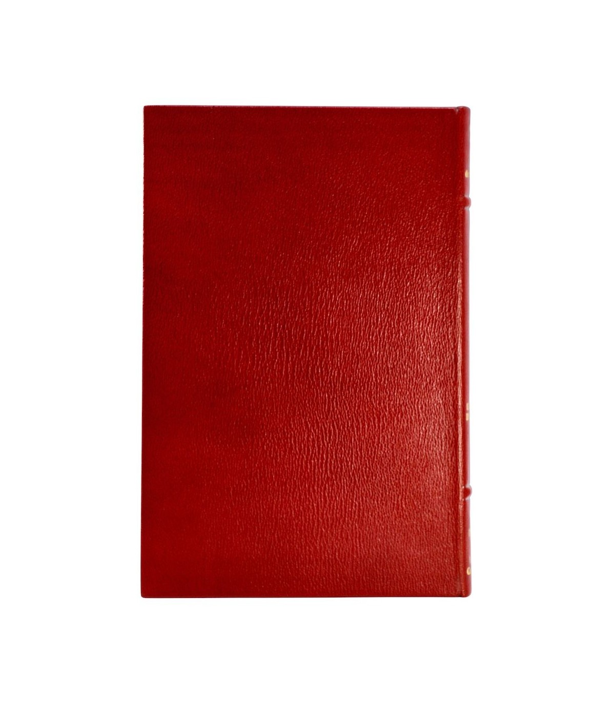 Plein chagrin bordeaux, dos à 2 nerfs titré or, premier plat orné d’une composition dorée, tête dorée, doublures et gardes de soie moirée framboise, étui bordé (reliure éditeur).