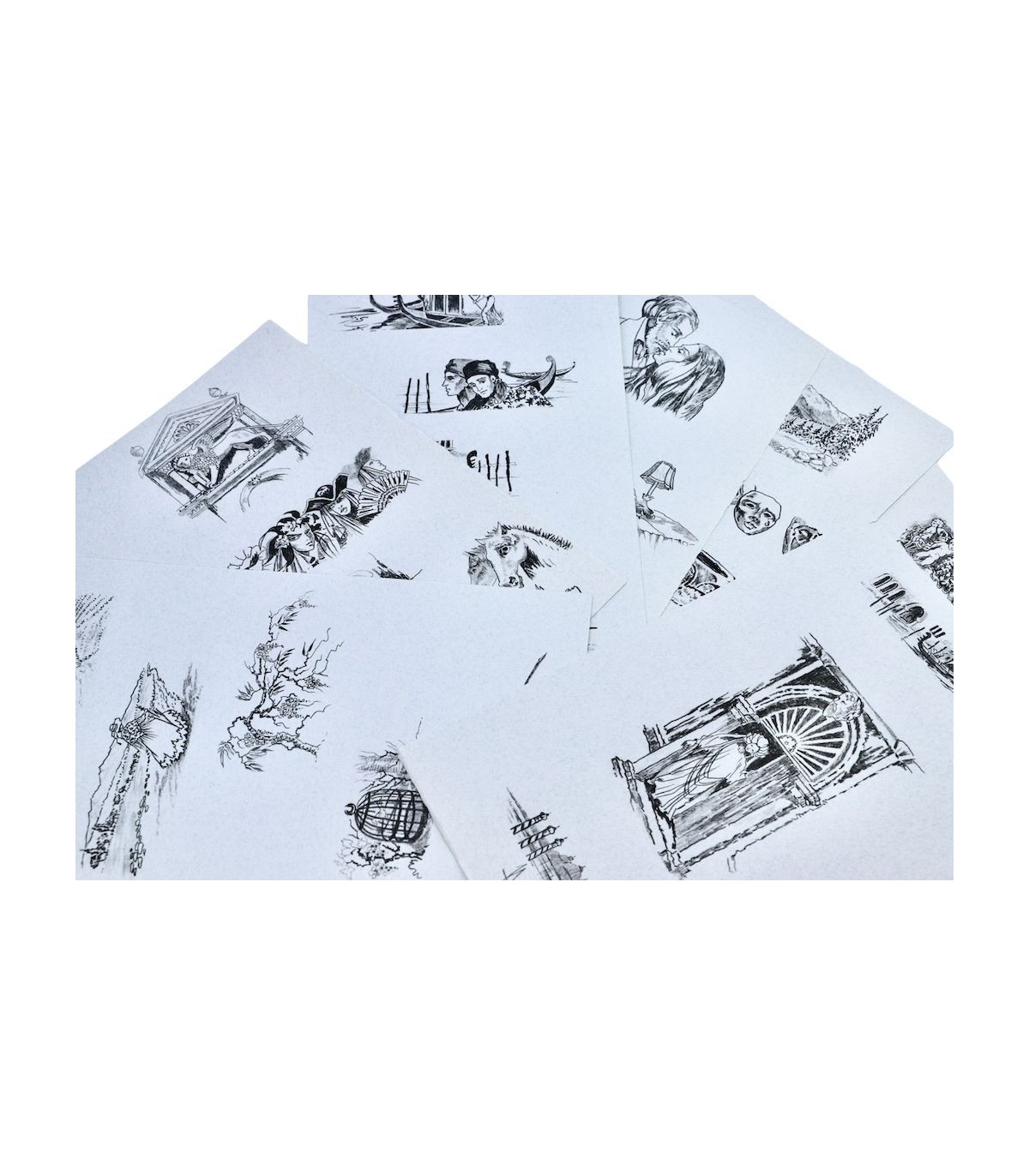 Ouvrage illustré de 8 compositions originales hors-texte en couleurs aquarellées de la main de l’artiste et signées au crayon et de 33 dessins in-texte par Jori Duran. Un des 20 exemplaires numérotés contenant une suite signée des bandeaux et des culs-de-lampe, celui-ci n°12.