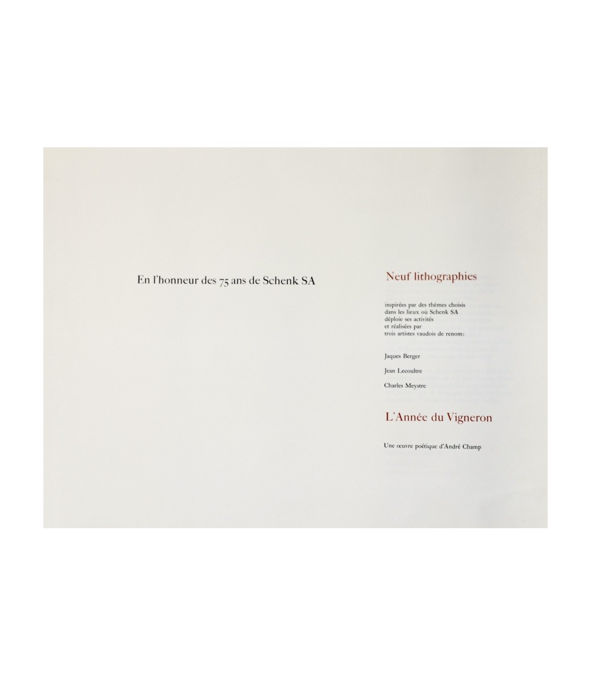 En l’Honneur des 75 ans de Schenk SA. L’Année du vigneron