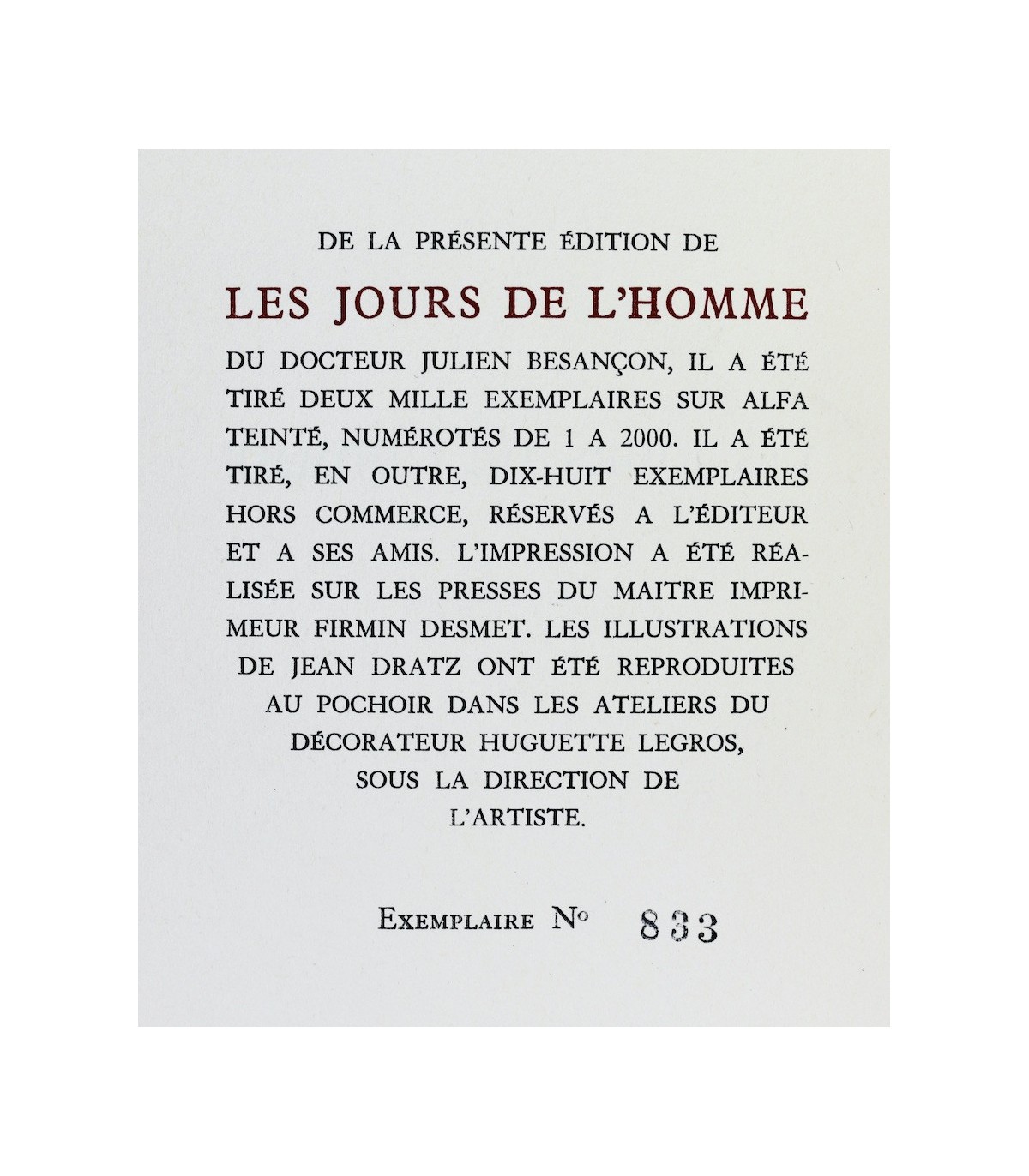 Ouvrage illustré de compositions en couleurs par Jean Dratz. Un des exemplaires numérotés, celui-ci n°833.