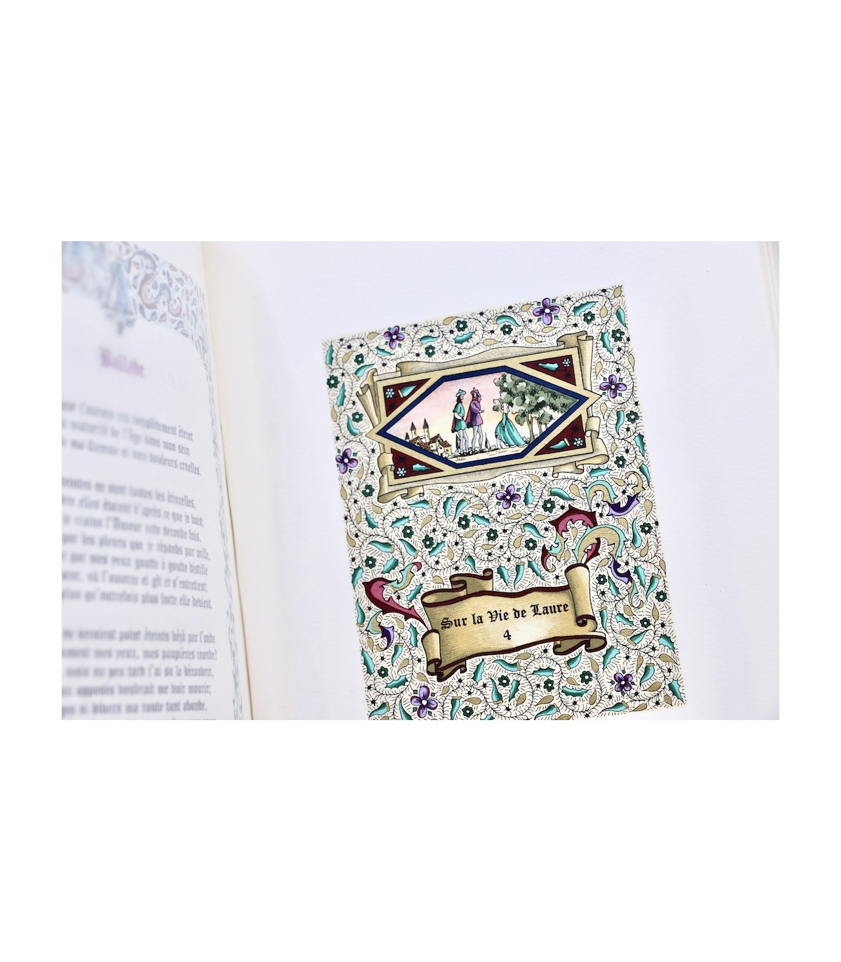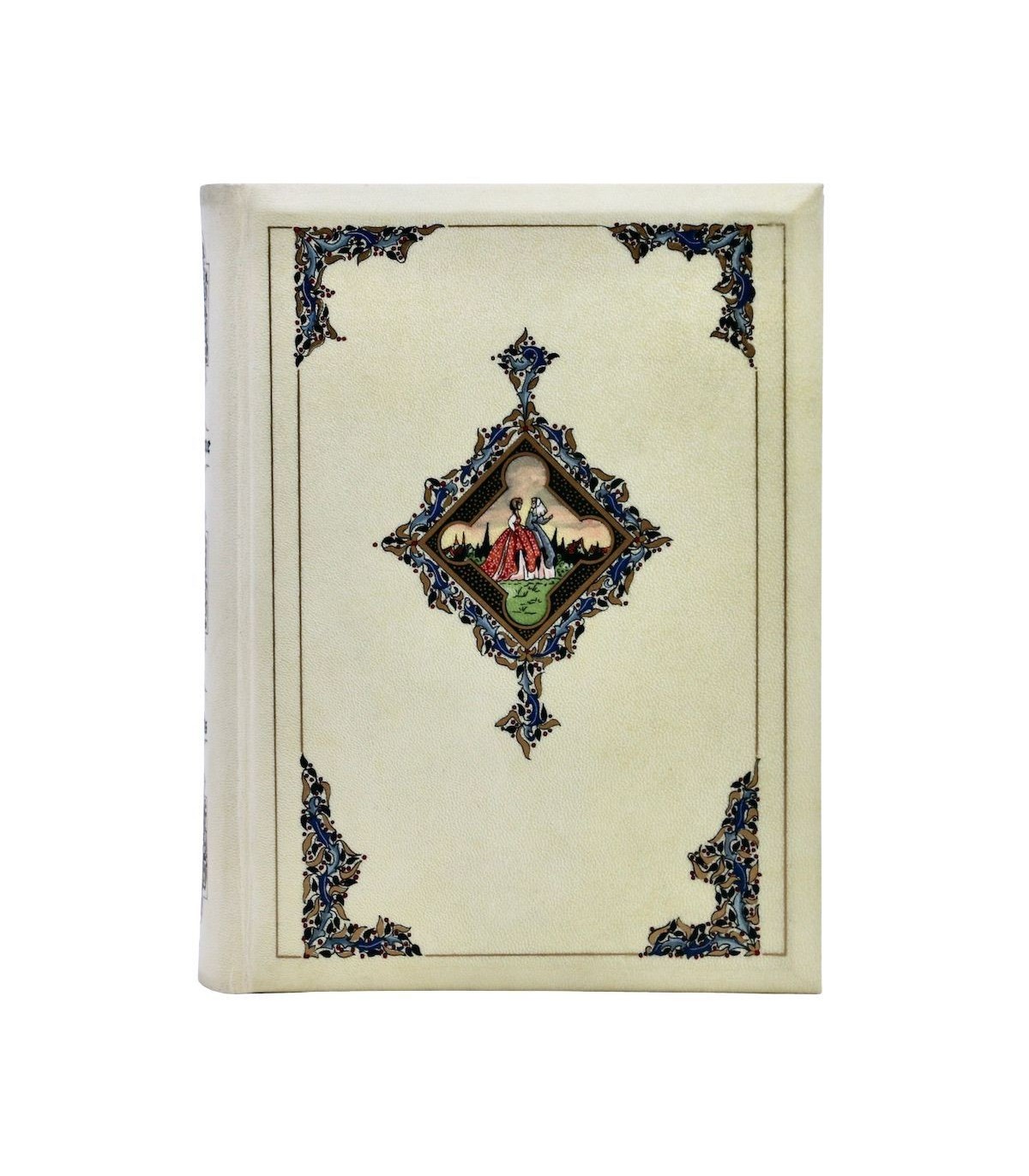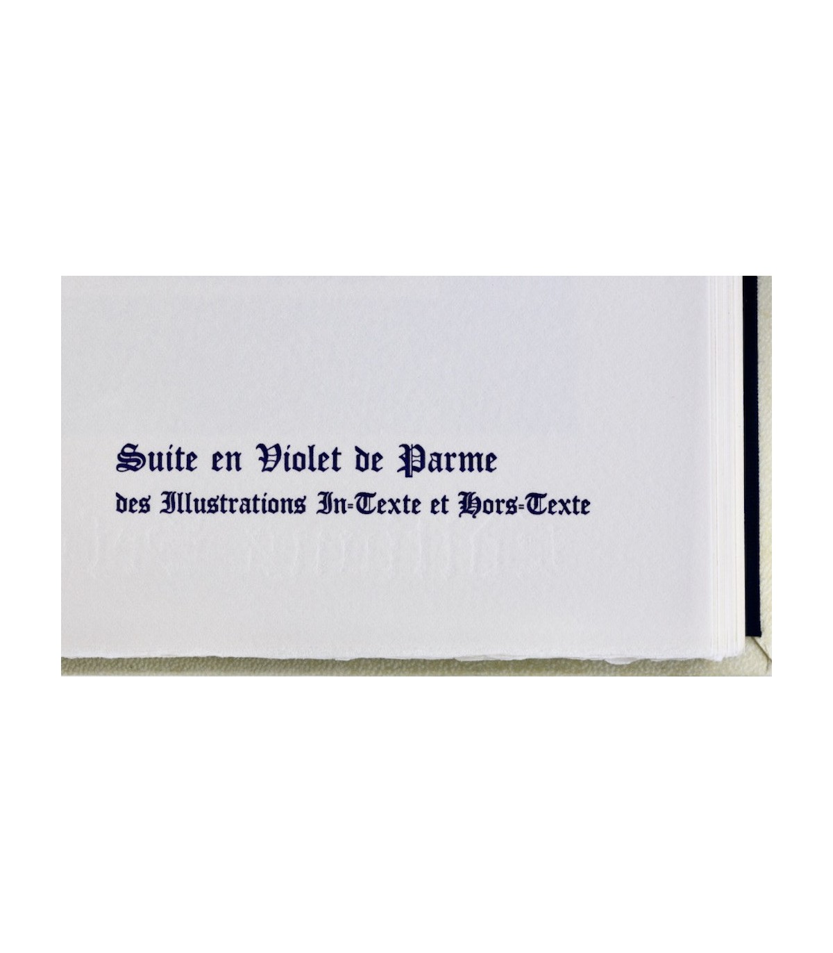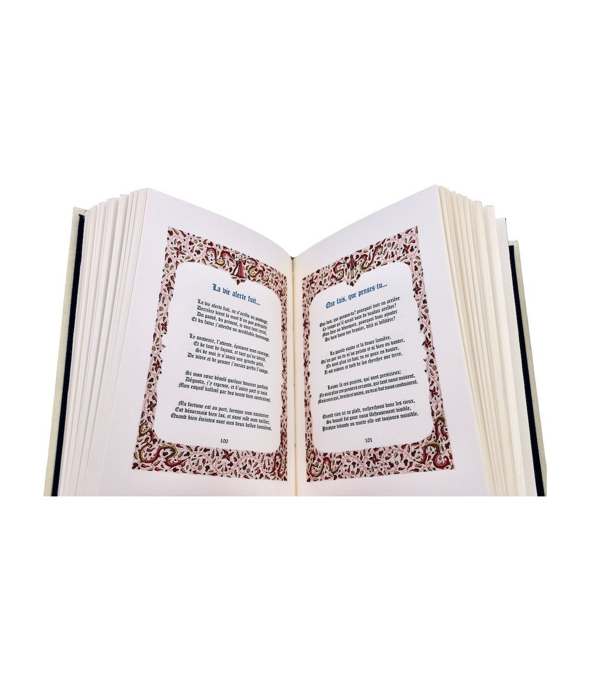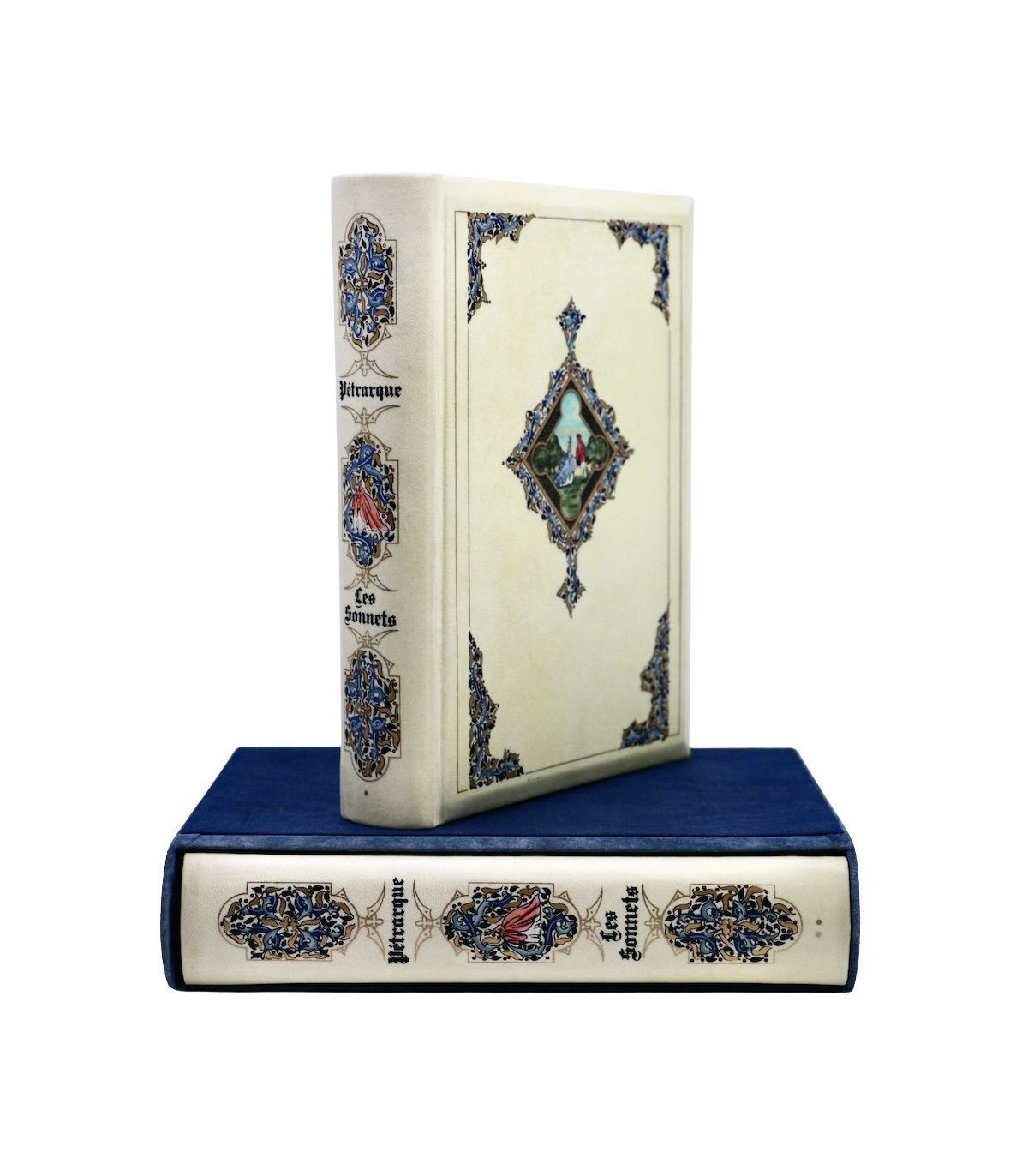 2 volumes petit in-4 (23,8cm x 18,2cm) de 186-[3]pp. & 195-[9]pp. Tirage à 1300 exemplaires numérotés sur vélin d'Arches. Plein vélin, dos et plats décorés de miniatures et ornements peints, plats biseautés, tête dorée, doublures et gardes de papier tissé bleu, étui.
