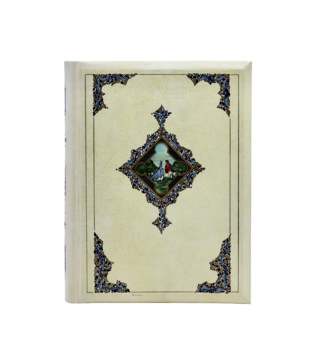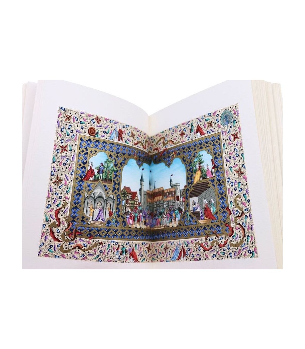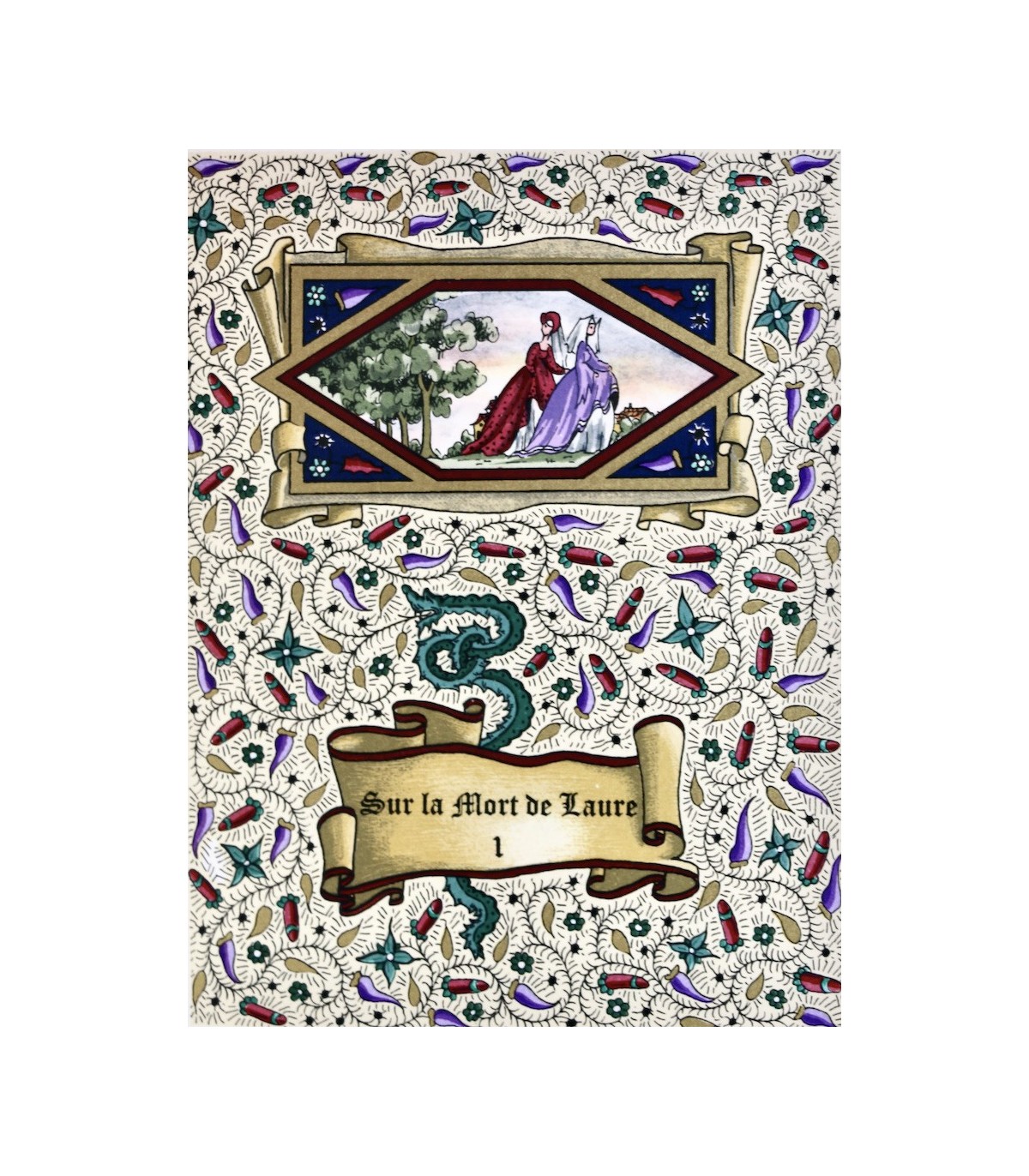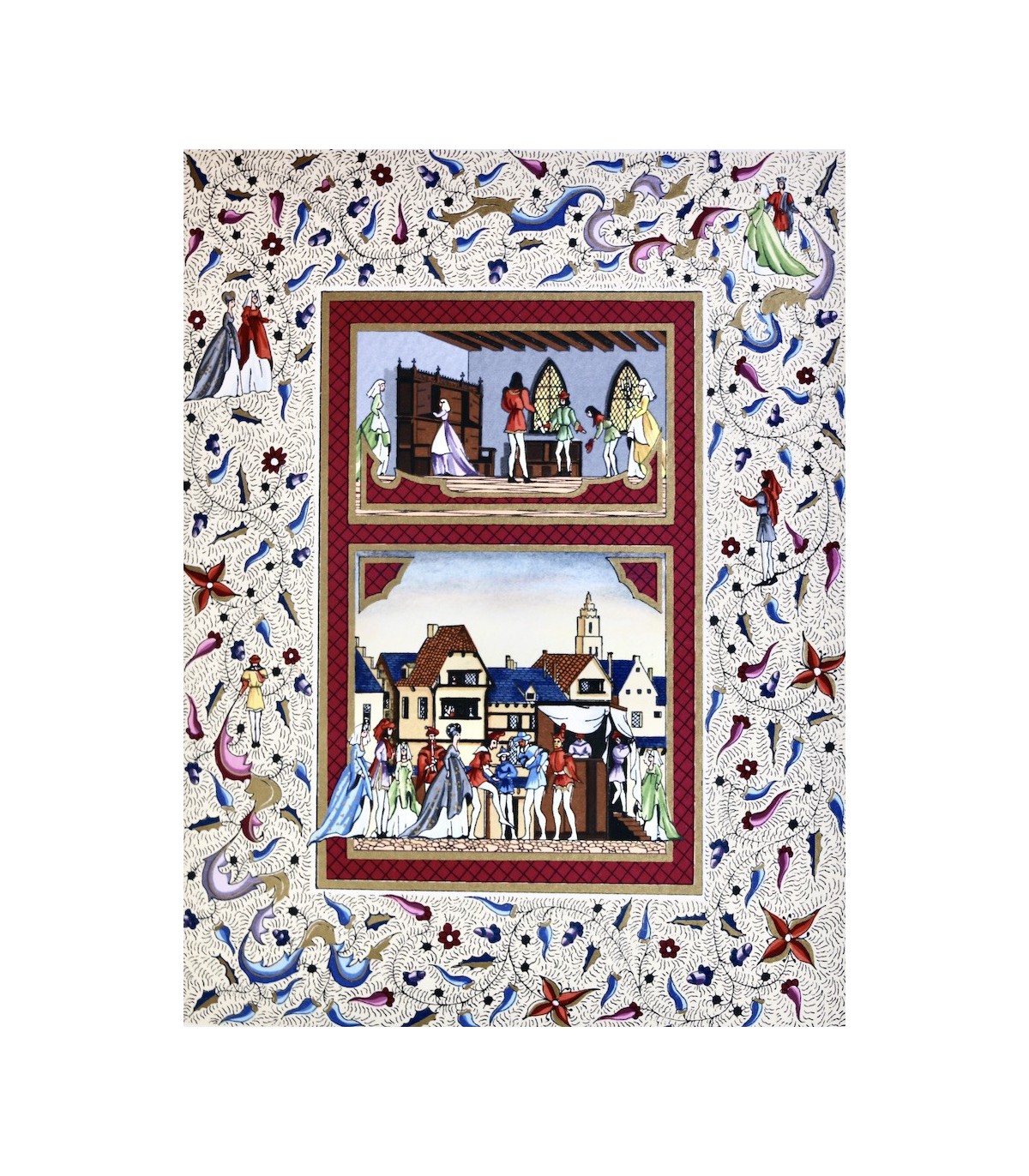 2 volumes petit in-4 (23,8cm x 18,2cm) de 186-[3]pp. & 195-[9]pp. Tirage à 1300 exemplaires numérotés sur vélin d'Arches. Plein vélin, dos et plats décorés de miniatures et ornements peints, plats biseautés, tête dorée, doublures et gardes de papier tissé bleu, étui.