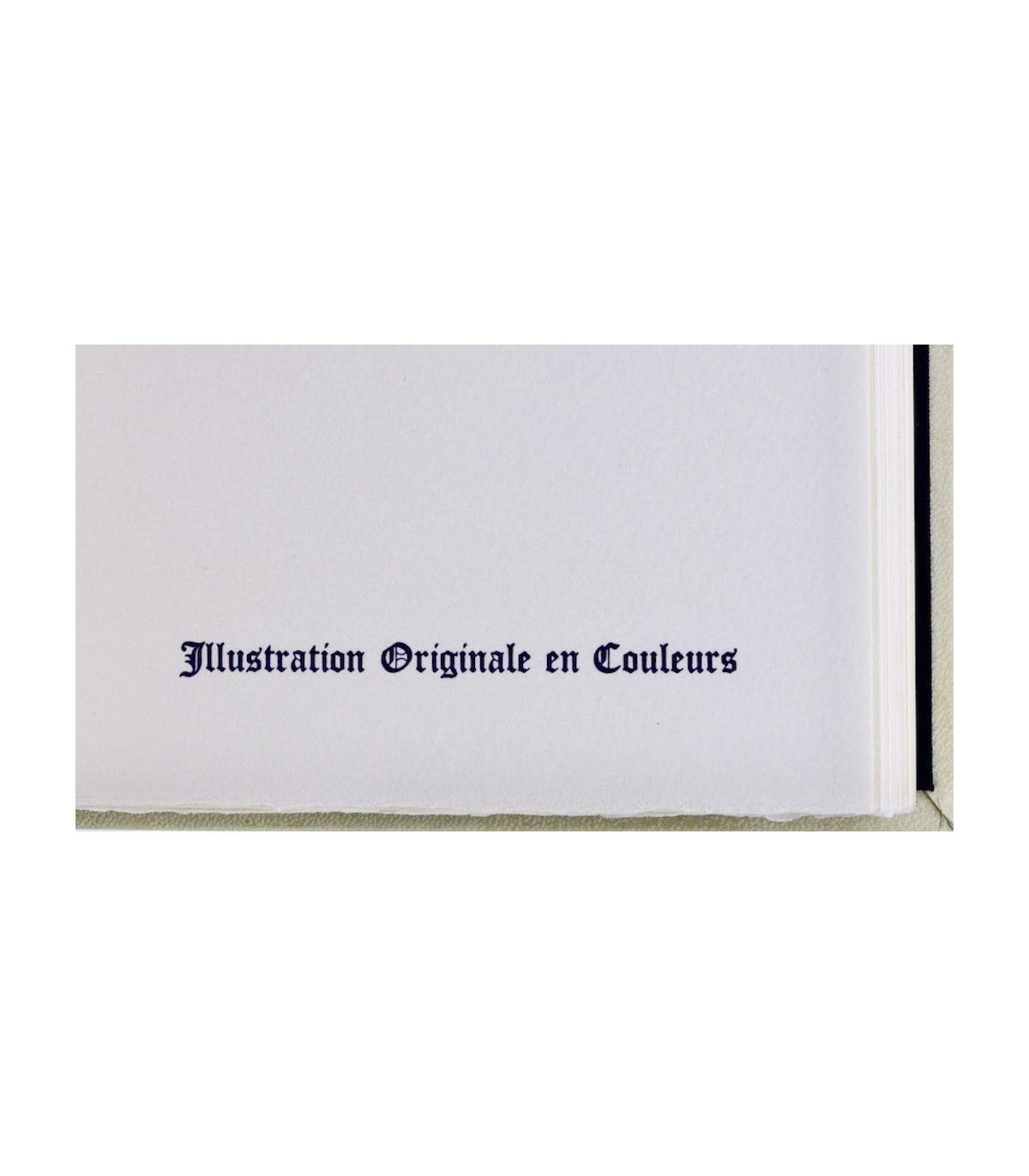 Un des 150 exemplaires numérotés contenant une illustration originale en couleurs et une suite du trait des illustrations en violet de parme, celui-ci n°12, bien complet de son certificat d'authenticité et enrichi d'un hommage manuscrit de l'artiste sur la page de faux titre du tome 1. Il manque à cet exemplaire la double planche encadrée annoncée à la justification.