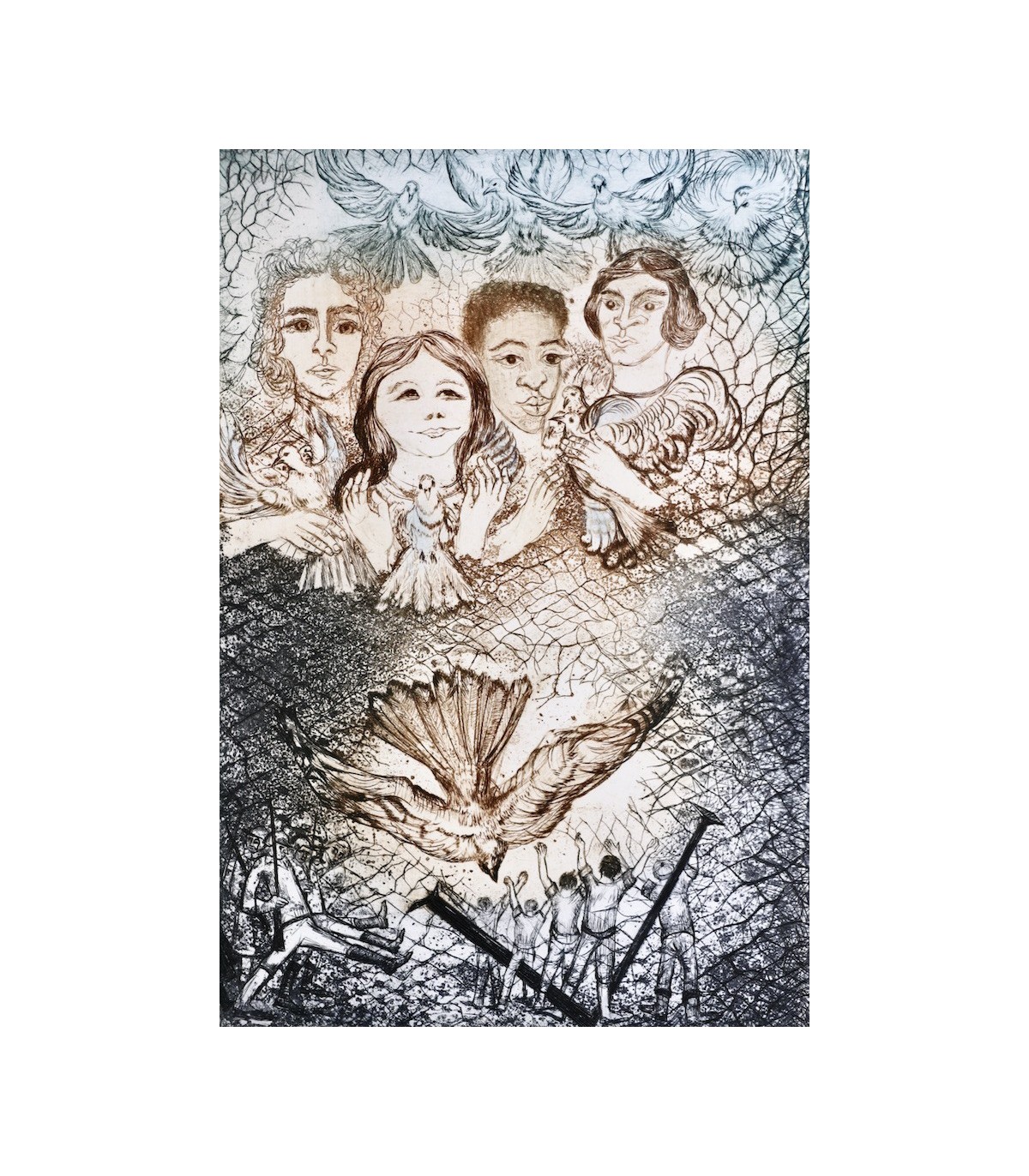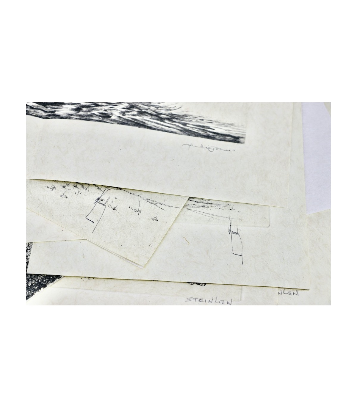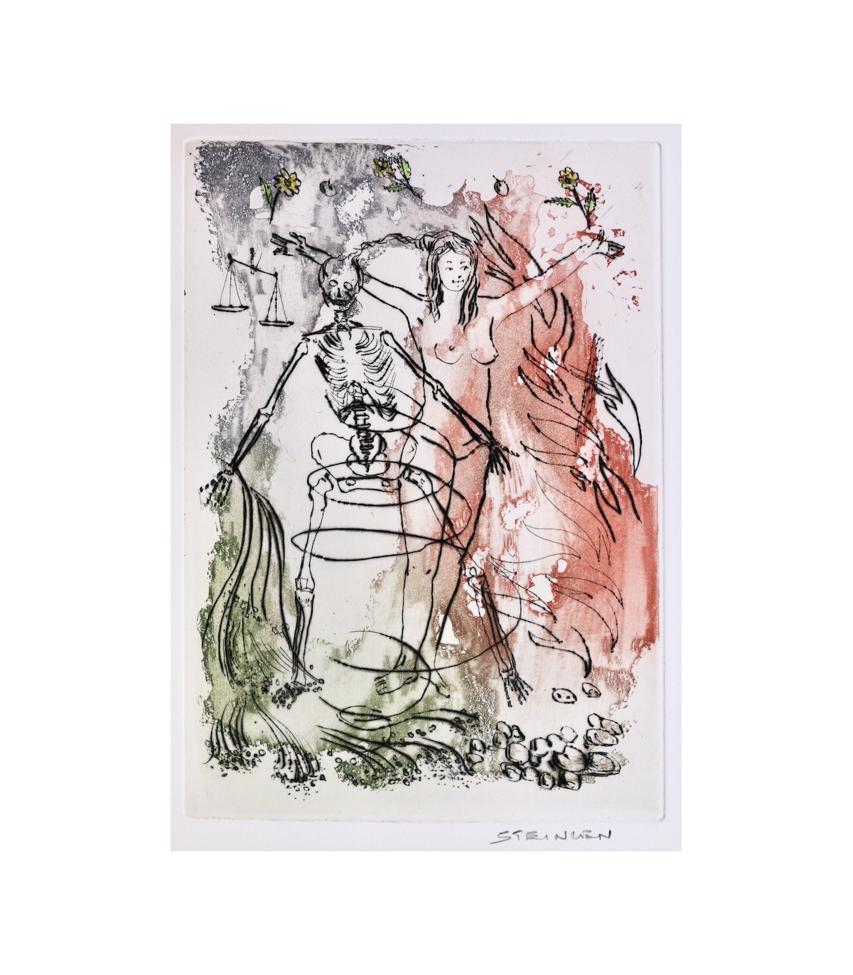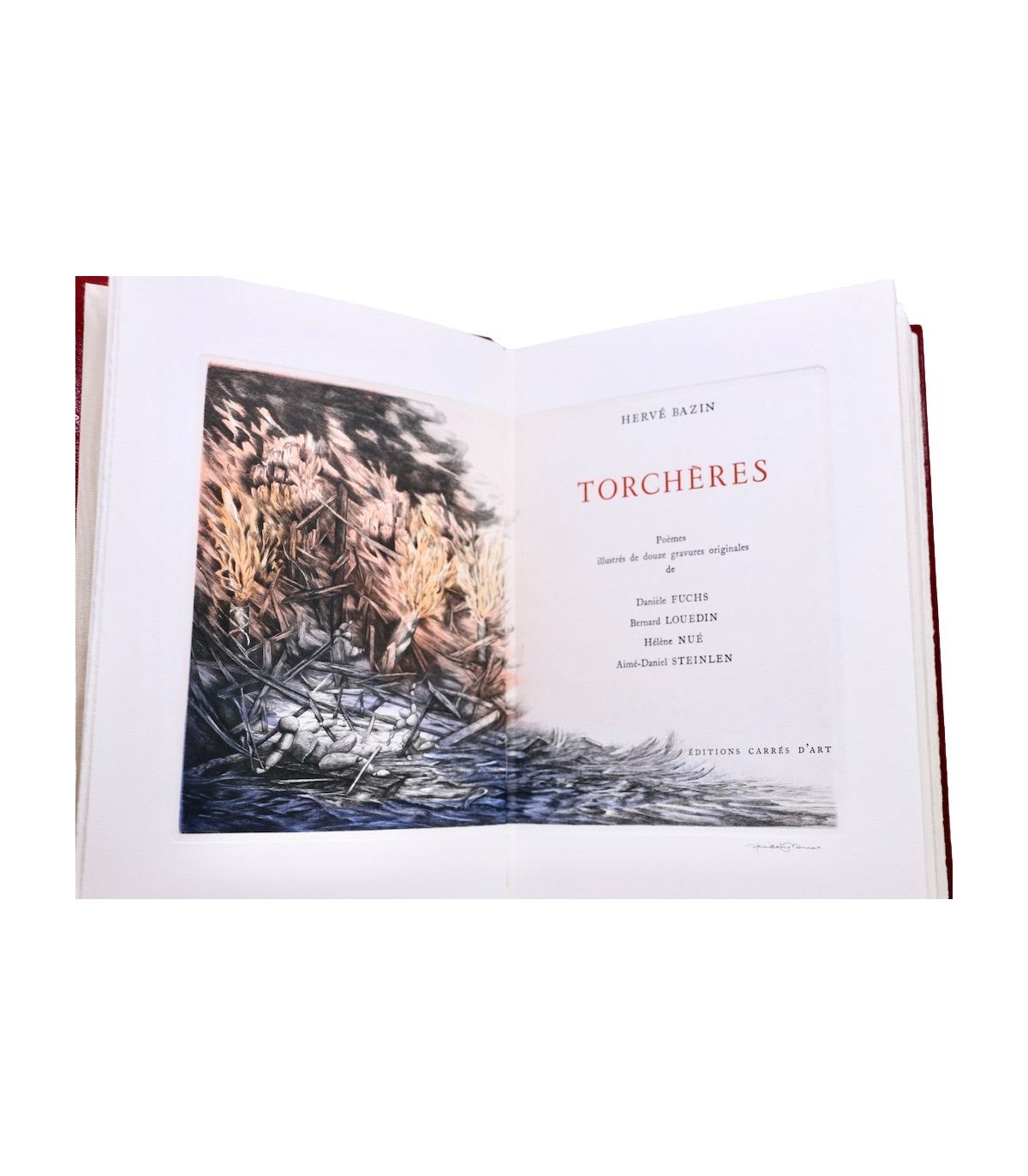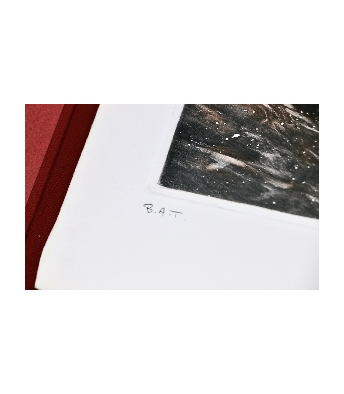 Ouvrage illustré de 12 gravures hors-texte en couleurs signées par Danièle Fuchs, Bernard Louedin, Hélène Nué et Aimé-Daniel Steinlen. Un des 9 exemplaires numérotés comportant un cuivre, un bon à tirer et une suite des gravures tirées sur Japon nacré, celui-ci n°9.