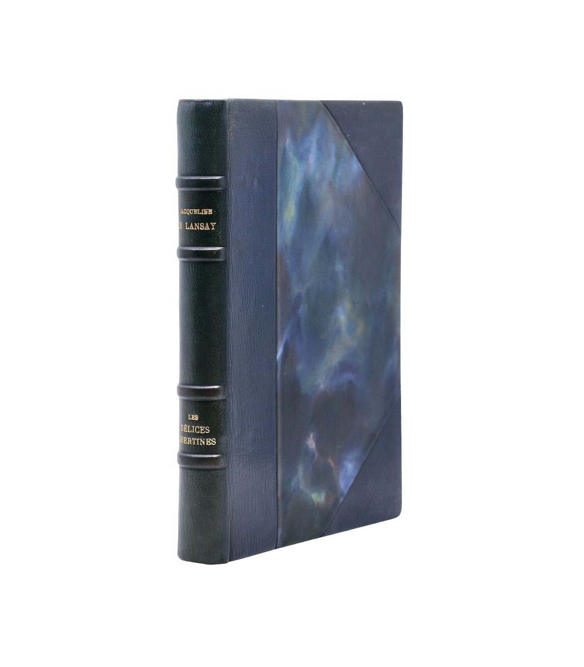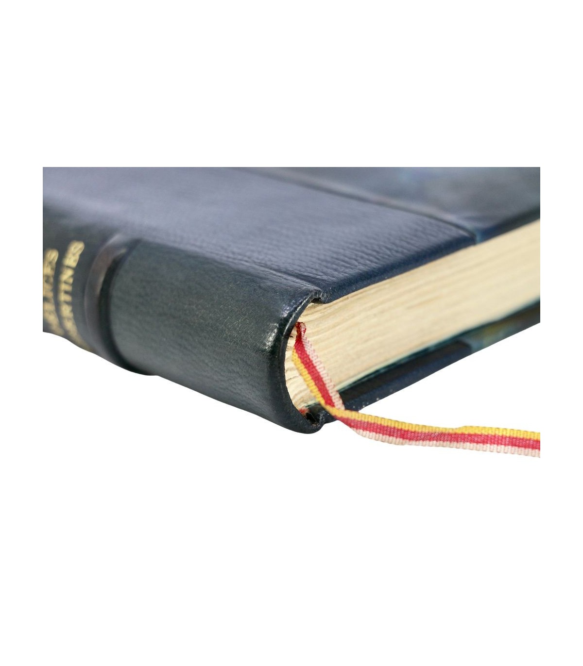 Demi-chagrin bleu nuit à coins de l’époque, dos à 4 nerfs orné de l’auteur et du titre en lettres dorées, tête dorée, couvertures et dos conservés.