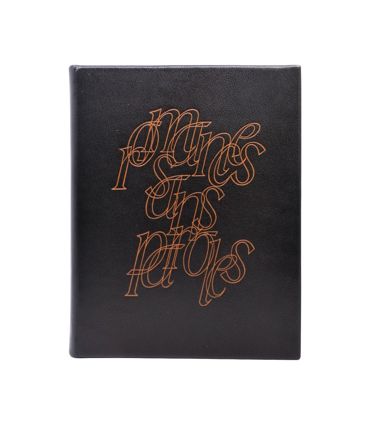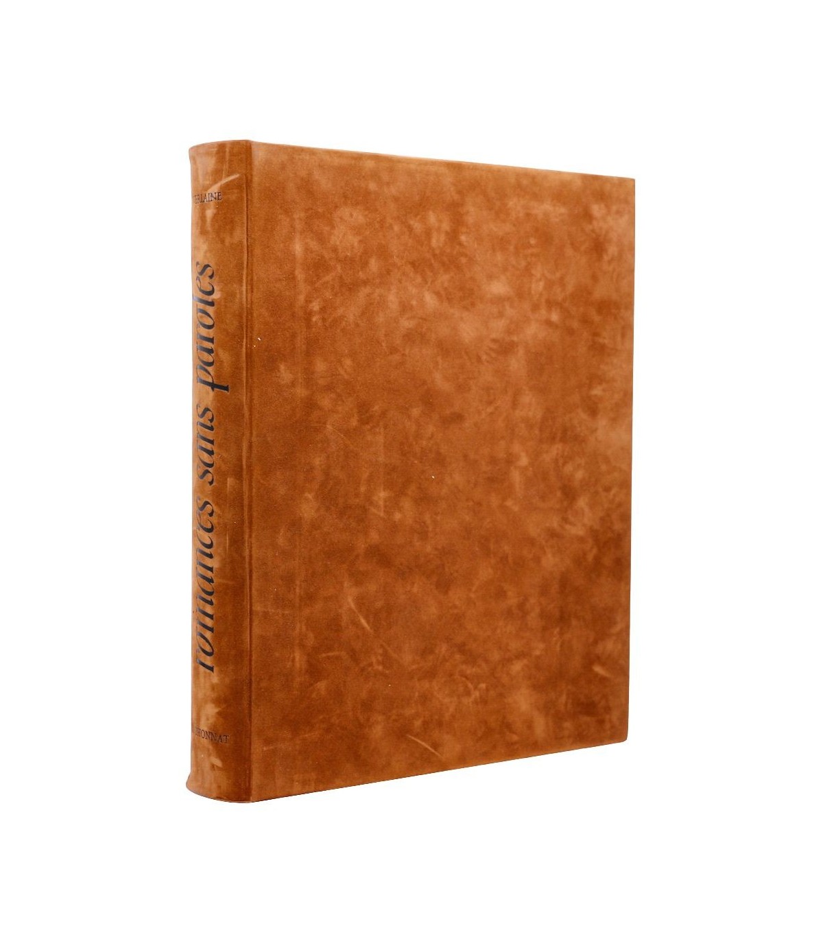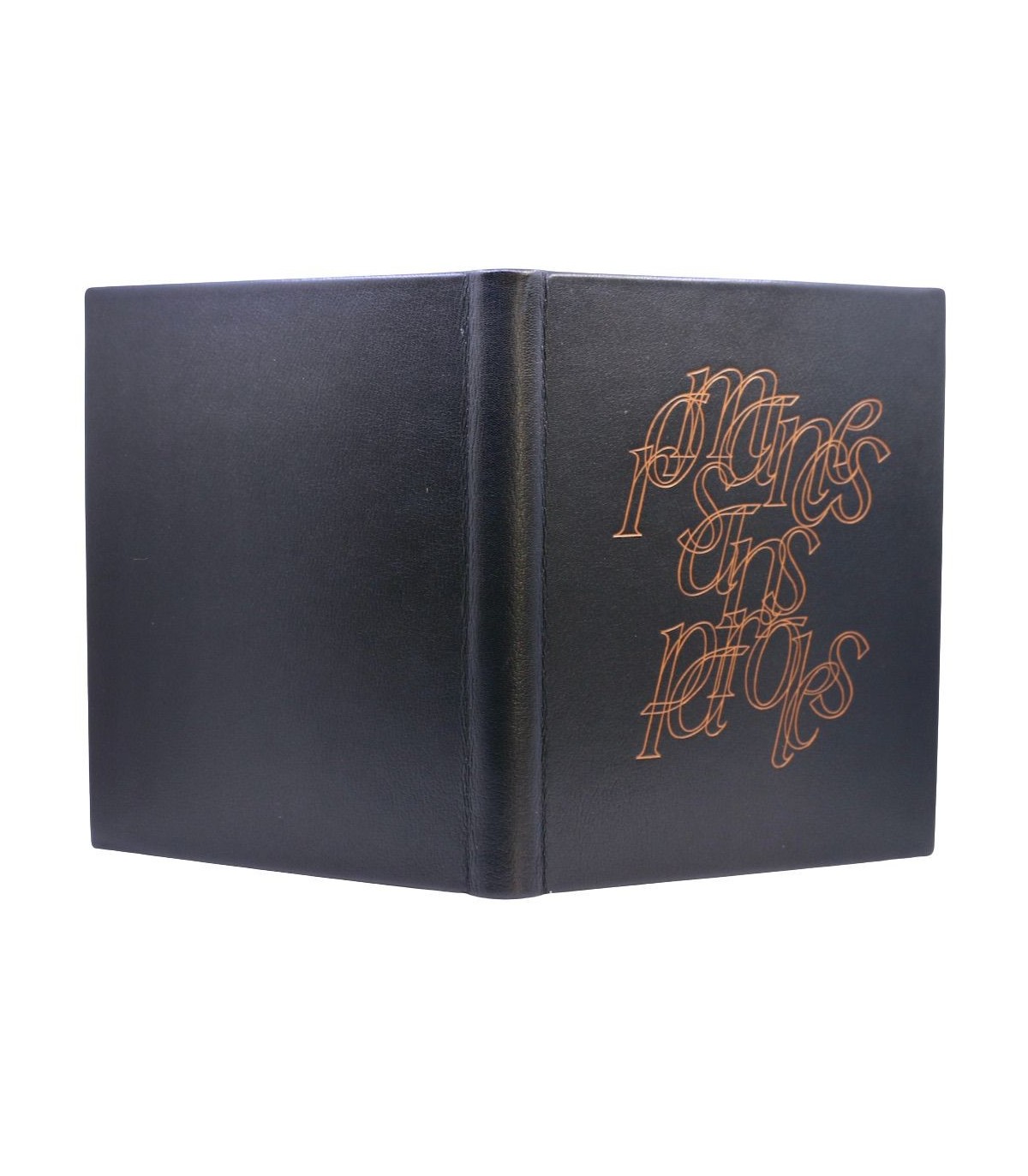 Plein cuir noir, dos lisse muet, premier plat décoré du titre au contour fauve, doublures et gardes de papier tissé fauve, emboitage de velours fauve (reliure éditeur).