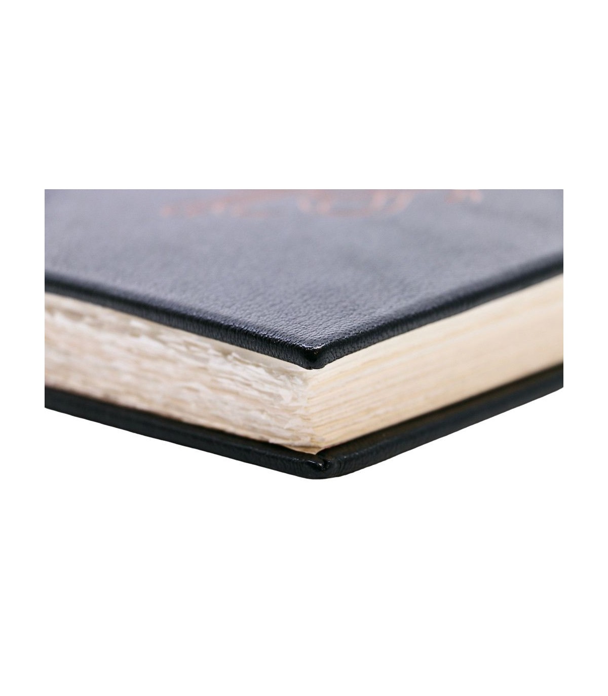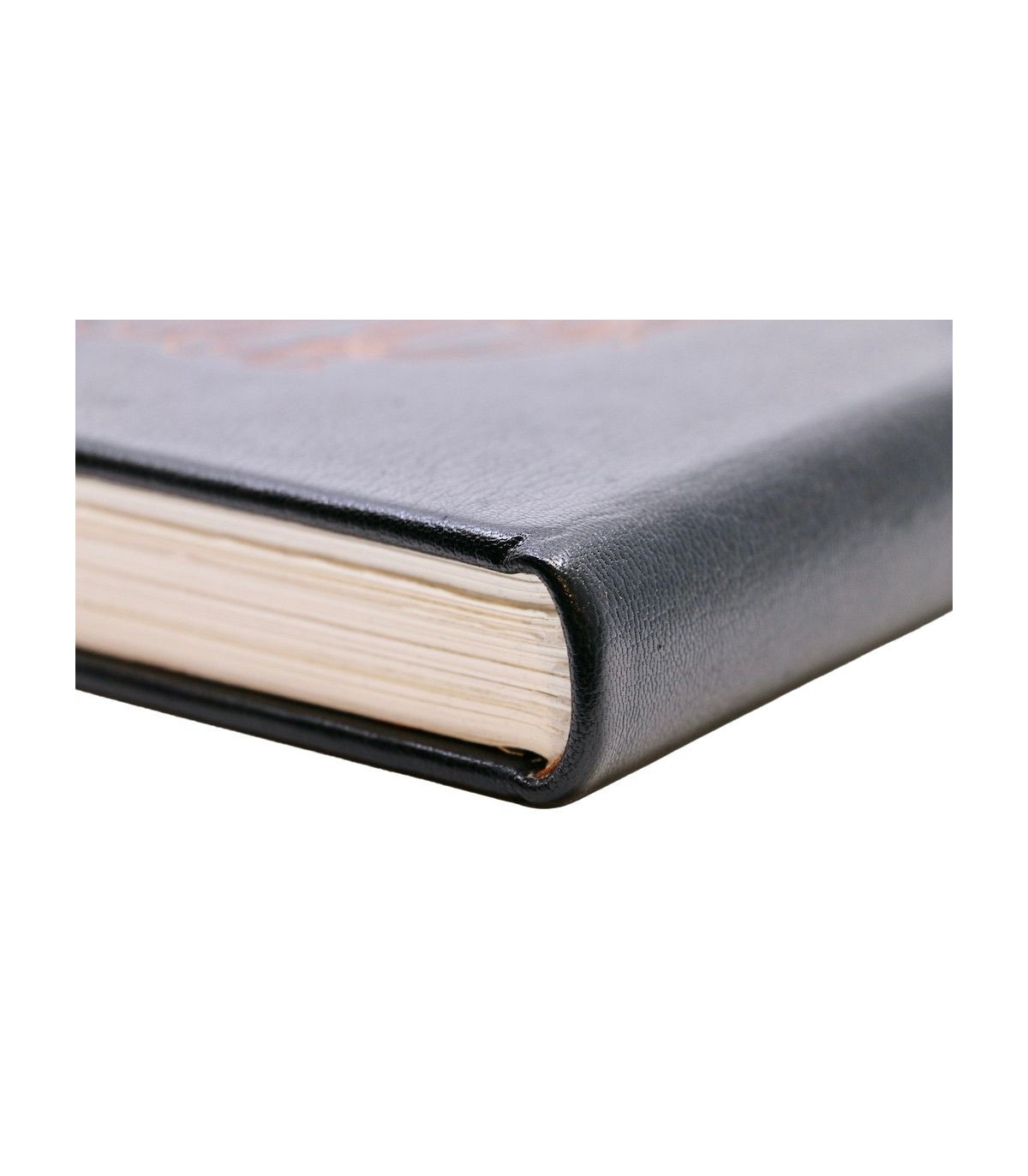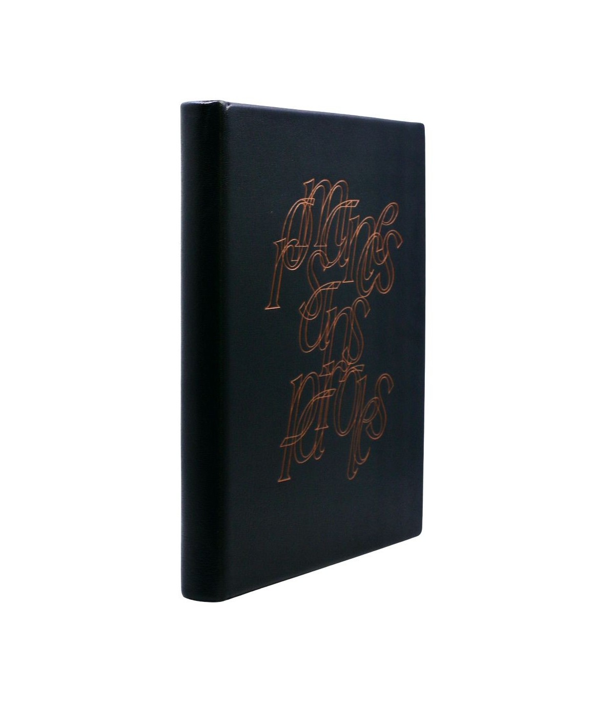 Plein cuir noir, dos lisse muet, premier plat décoré du titre au contour fauve, doublures et gardes de papier tissé fauve, emboitage de velours fauve (reliure éditeur).