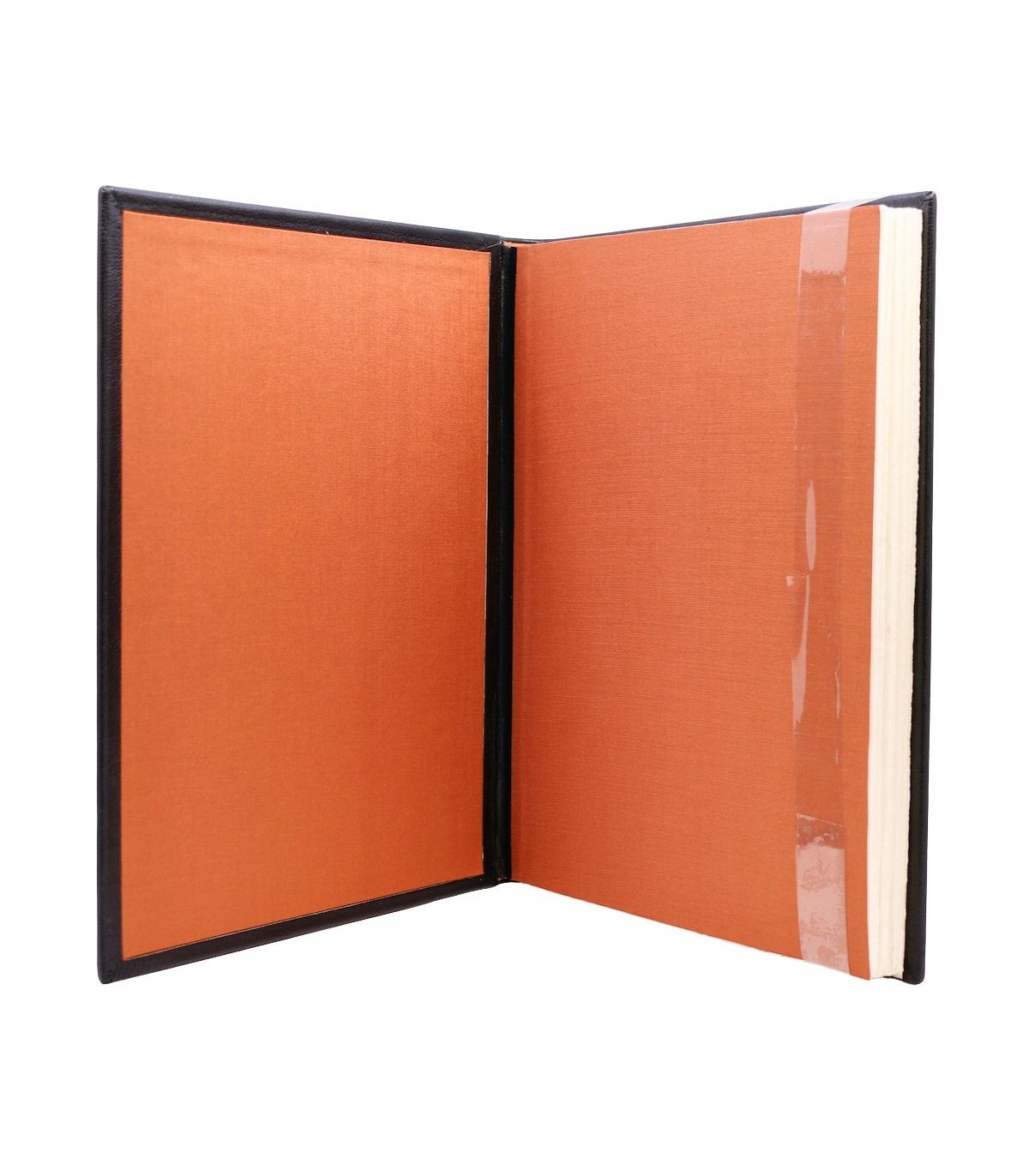 Plein cuir noir, dos lisse orné de l’auteur et du titre en lettres fauves, premier plat décoré du titre au contour fauve, doublures et gardes de papier tissé fauve, emboitage de velours fauve (reliure éditeur).
