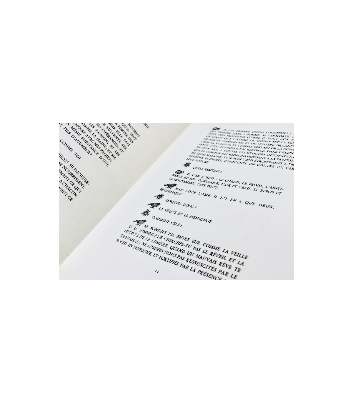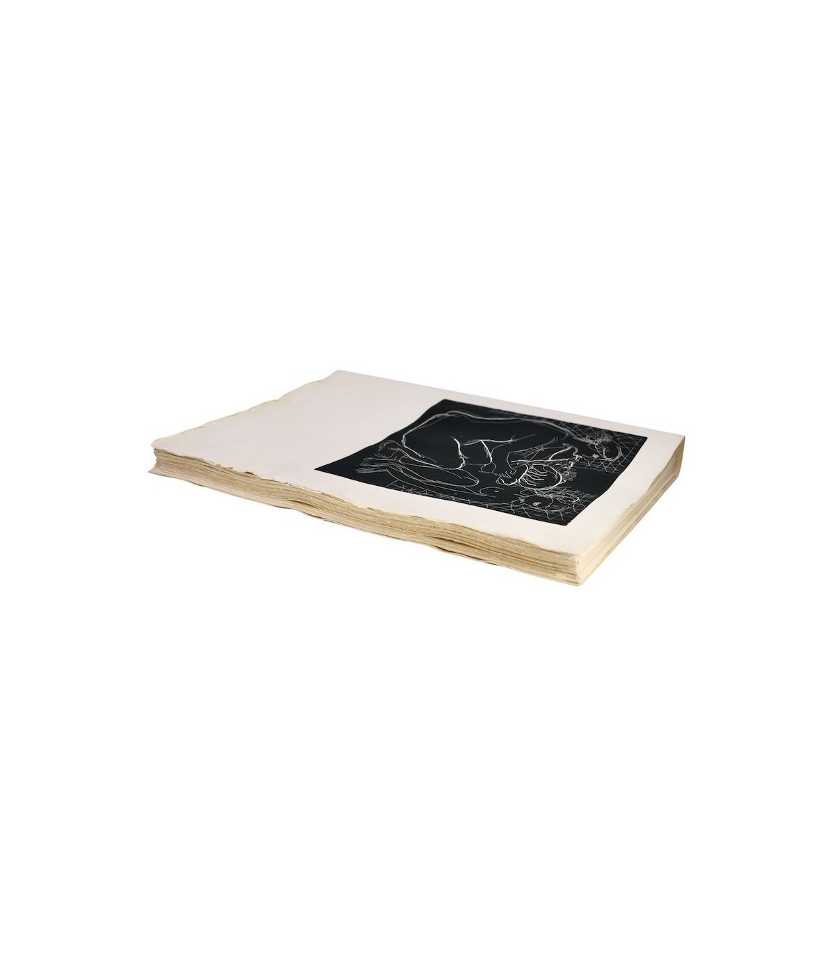 In-4 (33,5cm x 23,5cm) de 68-[1]pp. Tirage à 225 exemplaires numérotés sur vélin d’Arches. En feuilles sous couverture illustrée, chemise et étui.