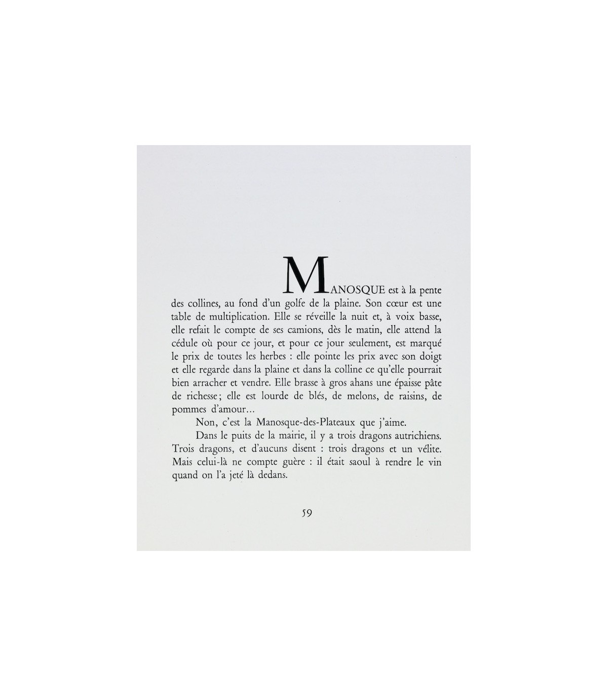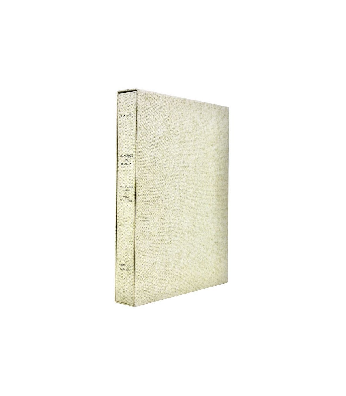 In-4 (33,3cm x 25,5cm) de [6]-102-[3]pp. Tirage à 140 exemplaires numérotés sur Rives, dont 20 exemplaires hors-commerce. En feuilles sous couverture imprimée et rempliée, chemise et étui.