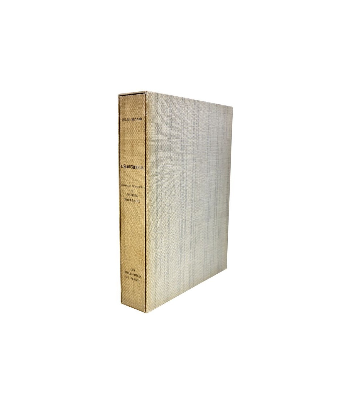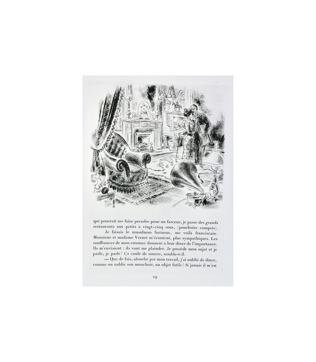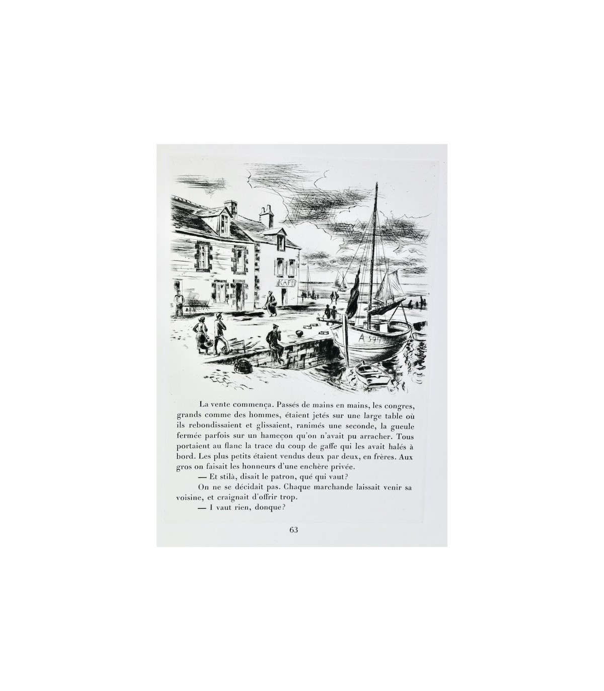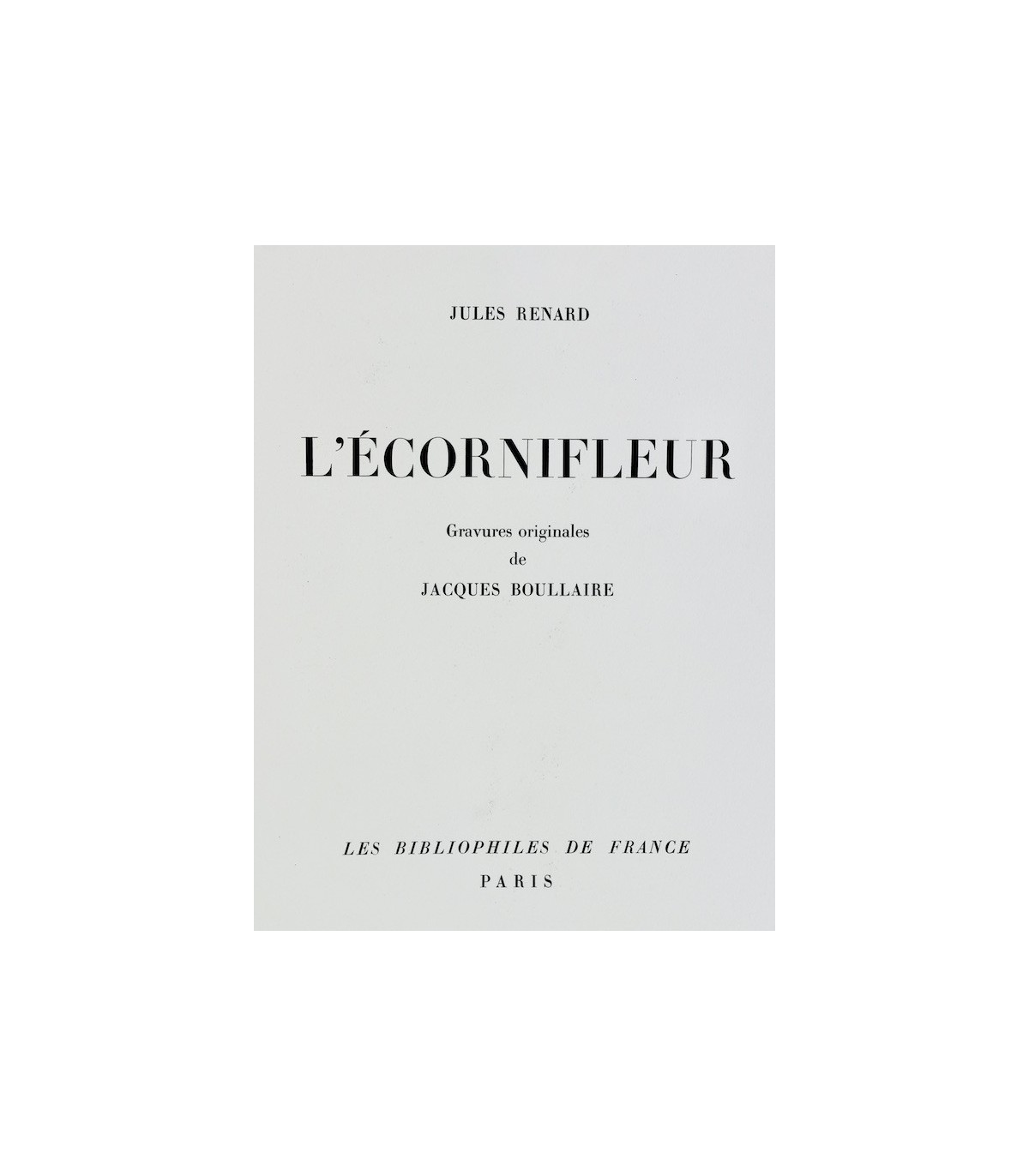 Ouvrage illustré de 58 pointes sèches de Jacques Boullaire, dont le frontispice, 2 hors-texte, 23 in-texte et 32 culs-de-lampe. Un des exemplaires numérotés, celui-ci n°65, imprimé spécialement pour M. Robert Zwang, membre fondateur, enrichi du menu illustré de la société.