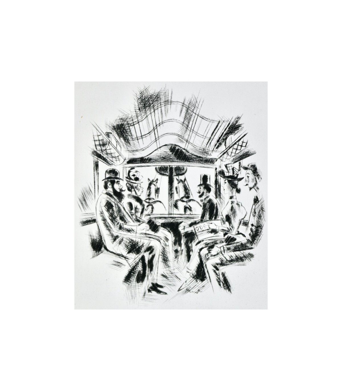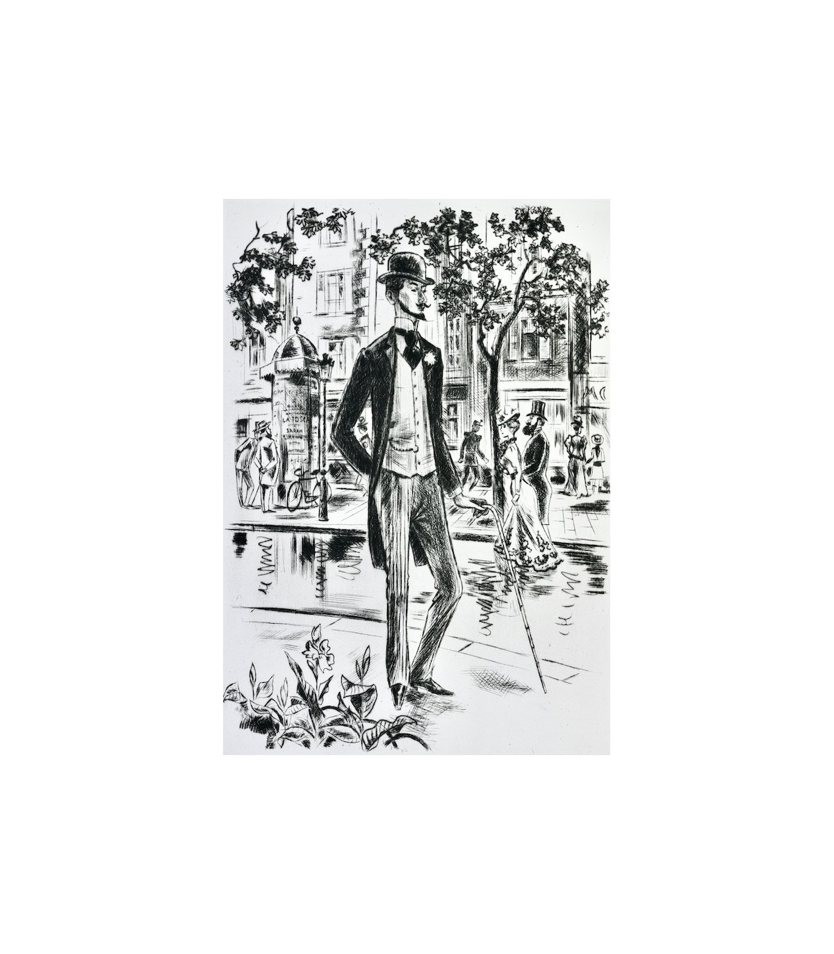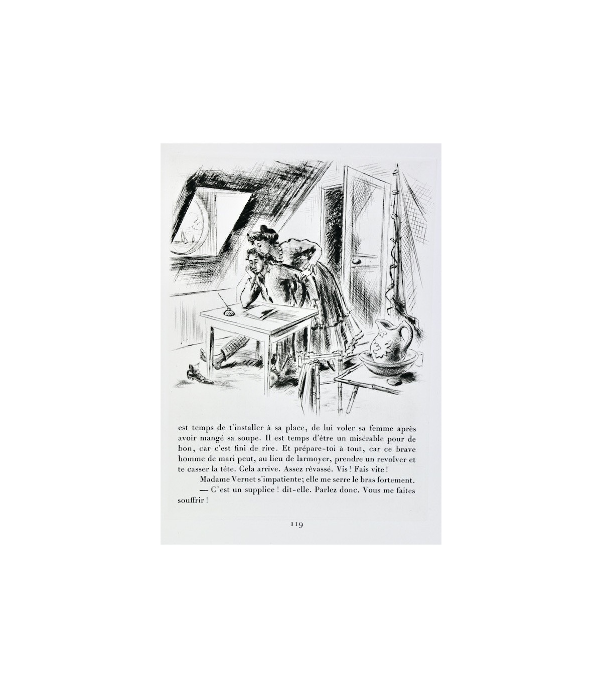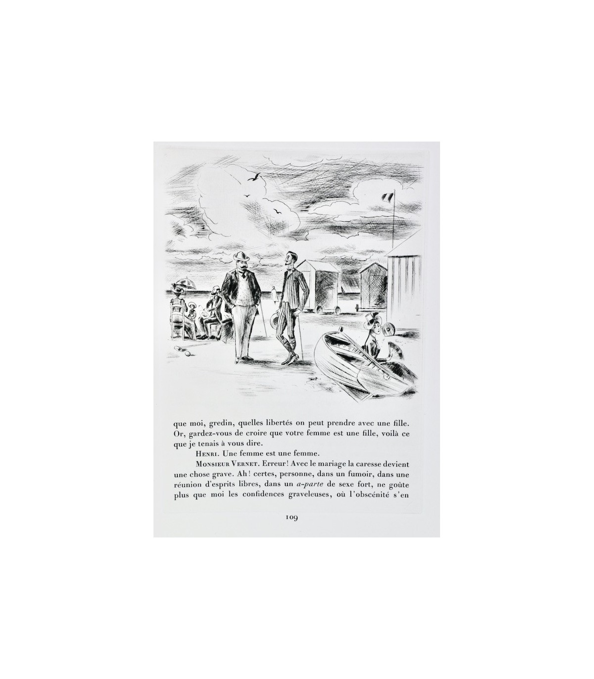 Ouvrage illustré de 58 pointes sèches de Jacques Boullaire, dont le frontispice, 2 hors-texte, 23 in-texte et 32 culs-de-lampe. Un des exemplaires numérotés, celui-ci n°65, imprimé spécialement pour M. Robert Zwang, membre fondateur, enrichi du menu illustré de la société.