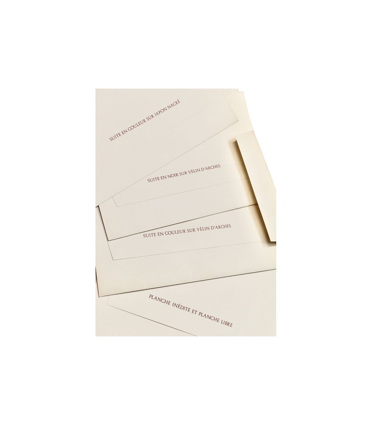 - une suite en couleurs de toutes les lithographies hors-texte et des planches libres sur Japon nacré,