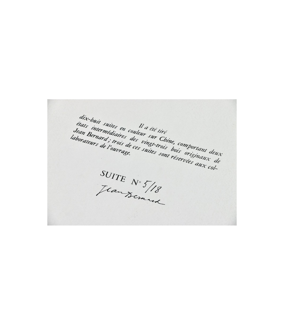 - d’une des 18 suites en couleurs sur Chine comportant 2 états intermédiaires des 23 bois (y compris l’illustration du menu), celle-ci n°5/18, signée par l’artiste.