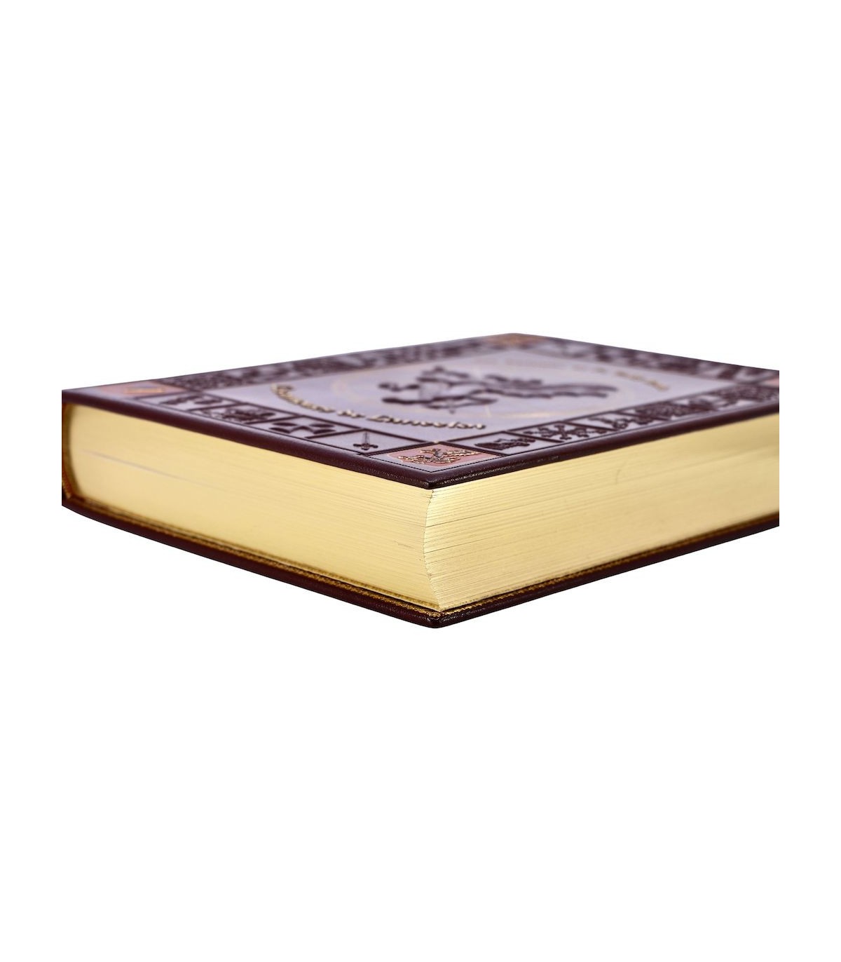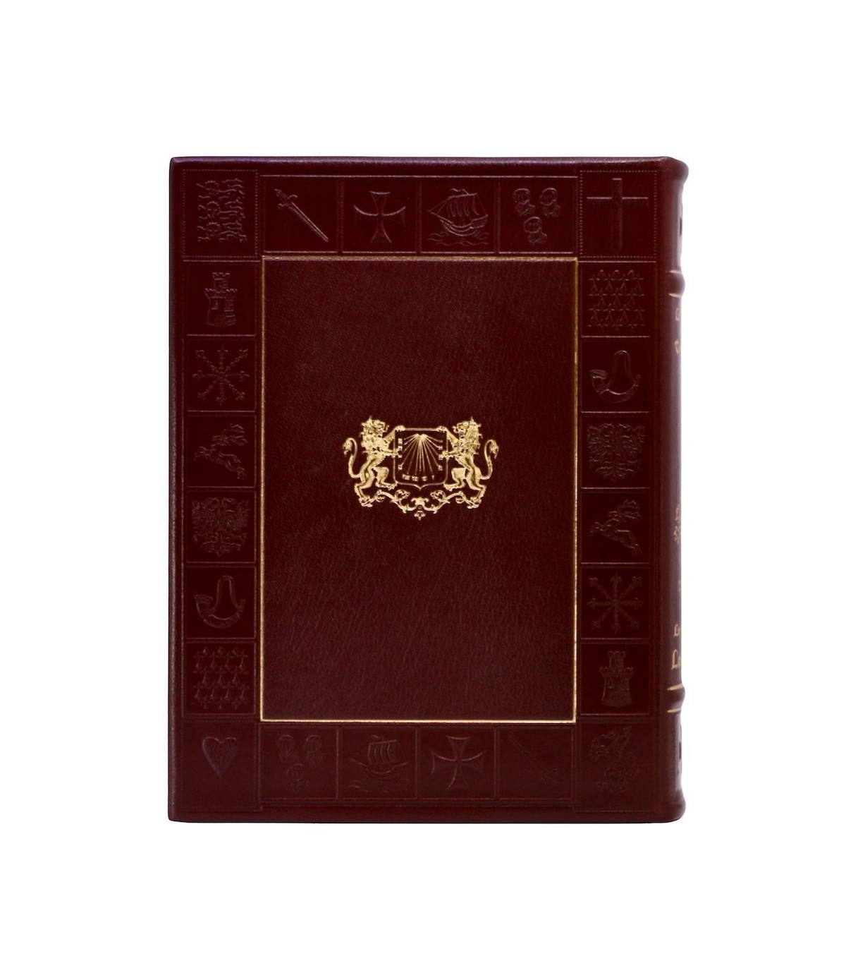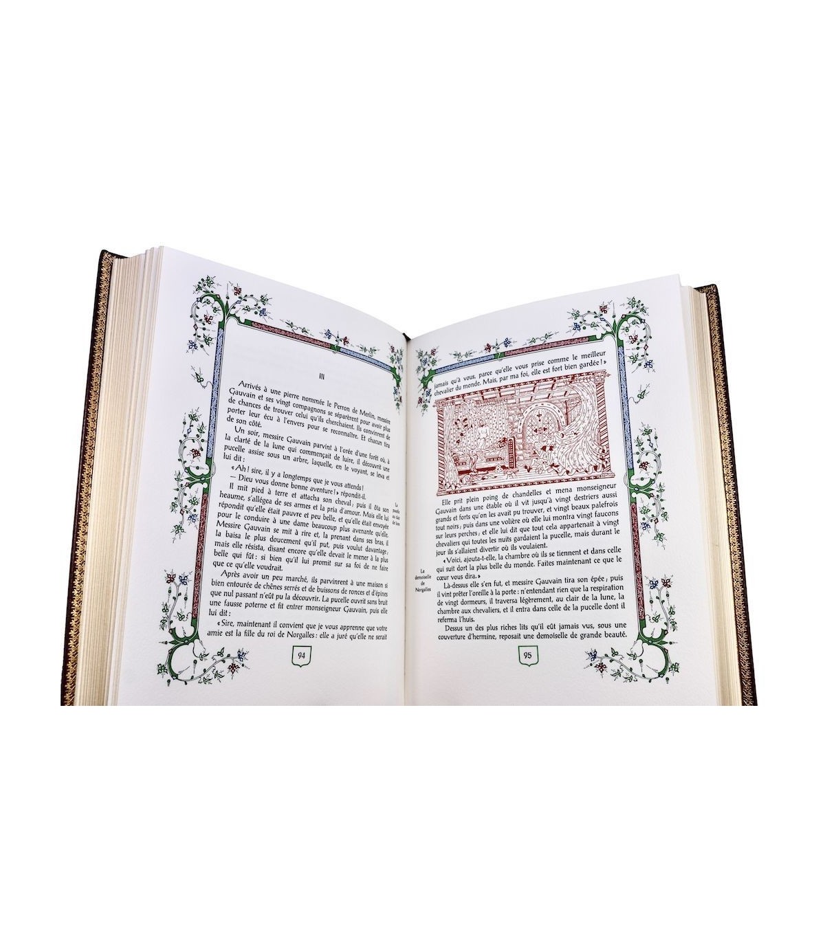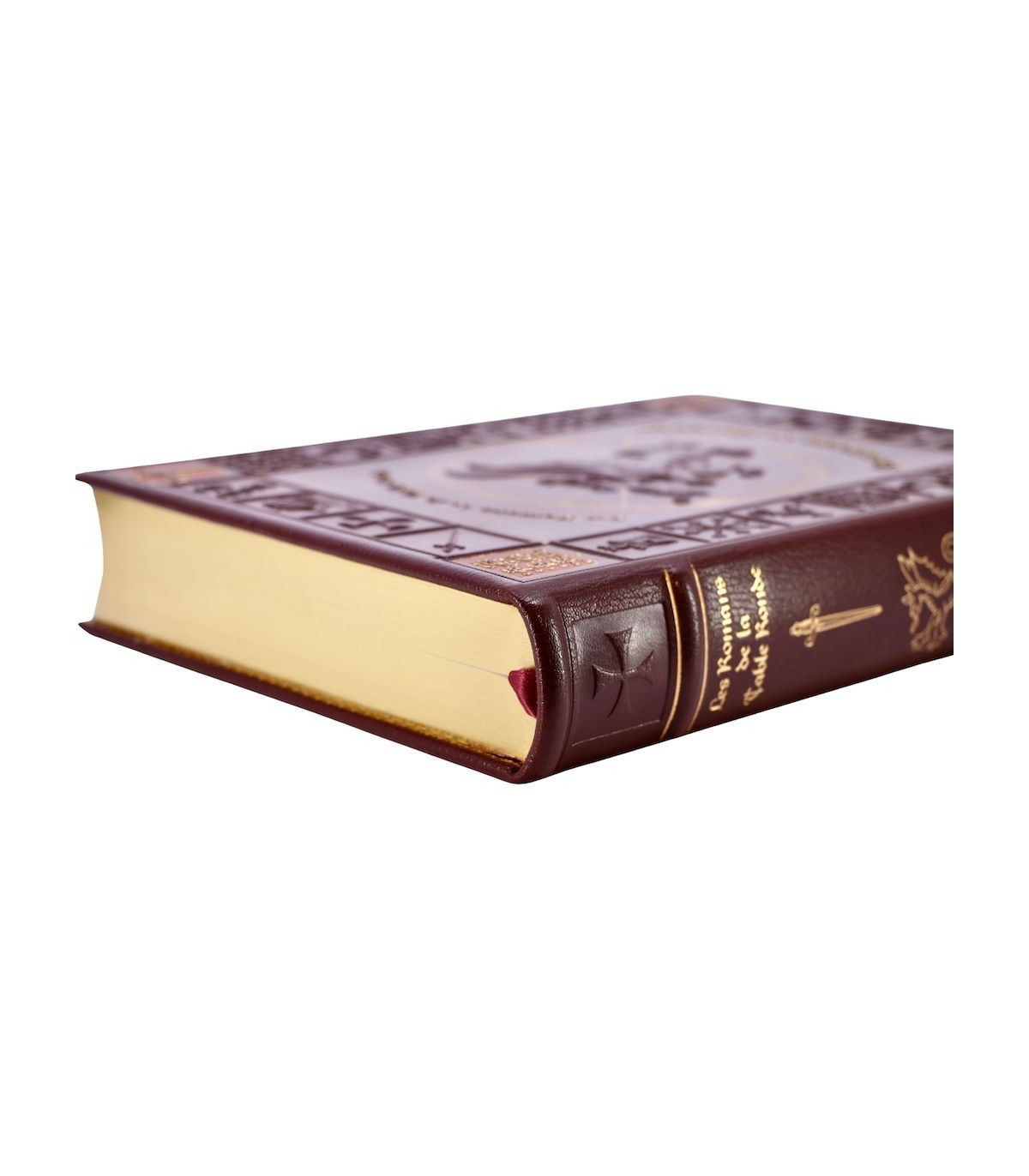 Pleine peau grenat estampée à froid et ornée d’un décor au dragon, dos à 2 faux nerfs orné, titre frappé or, contreplats encadrés d’une frise dorée, doublures et gardes de soie moirée beige, tranches dorées, étui bordé (reliure éditeur).