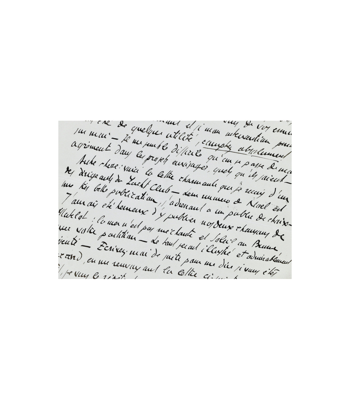 « Mon cher ami Je ne suis pas repassé par Paris, comme je l’espérais, et je n’ai pas pu aller m’entretenir avec vous de vos ennuis. Tenez-moi au courant et si mon intervention peut vous être de quelque utilité, comptez absolument sur moi. Il me semble difficile qu’on se passe de mon agrément dans les projets envisagés, quels qu’ils soient.