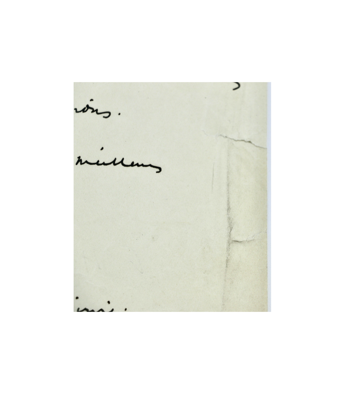 Bel état, pliures d’origine, 2 petites déchirures sans manque d’environ 2cm en marge extérieure. Très bonne lisibilité du texte et signature bien marquée.