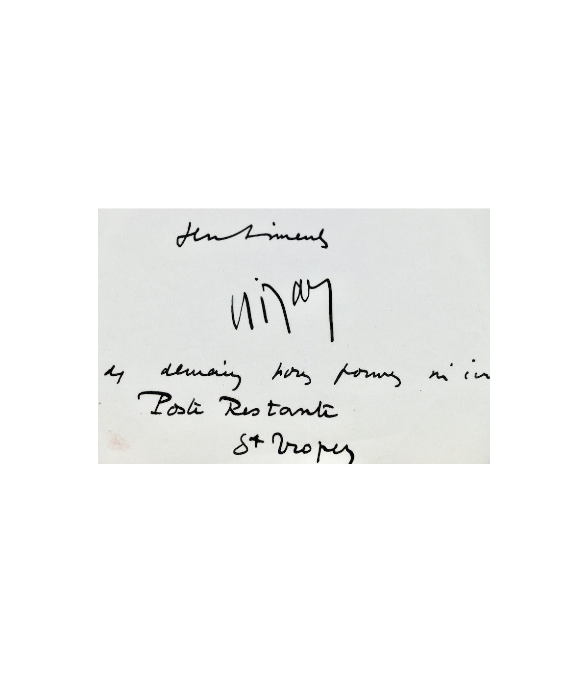 À partir de demain vous pouvez m’écrire : Poste restante St-Tropez Var. »