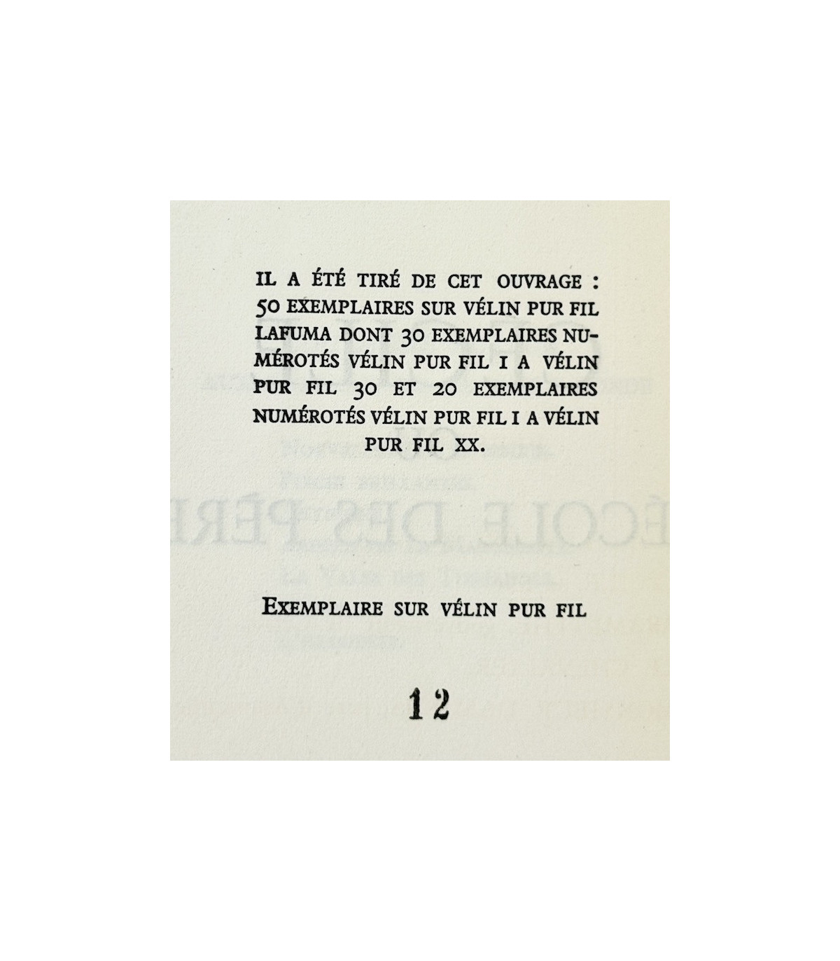 Un des 50 exemplaires numérotés sur vélin pur fil, celui-ci n°12, seul grand papier.