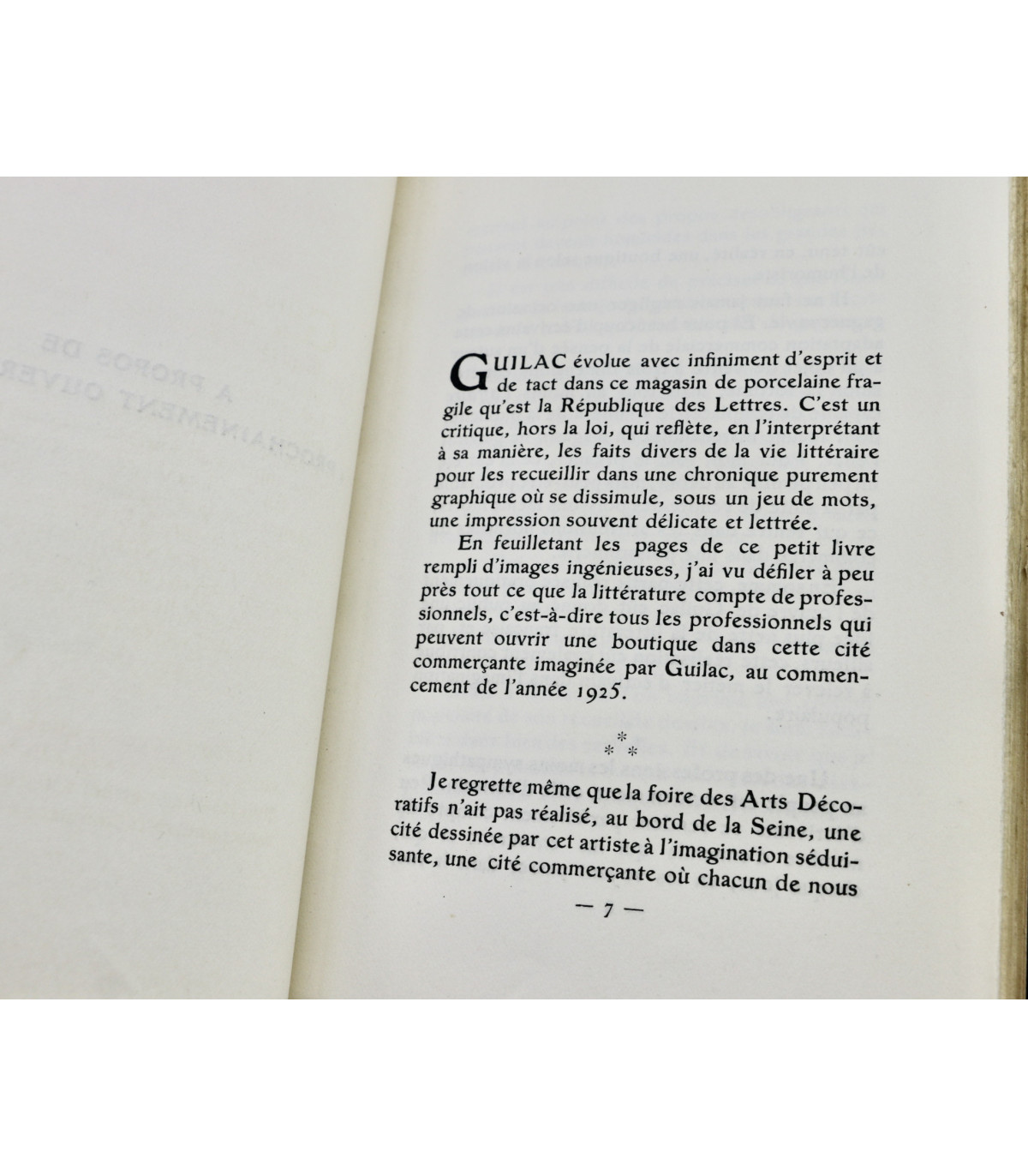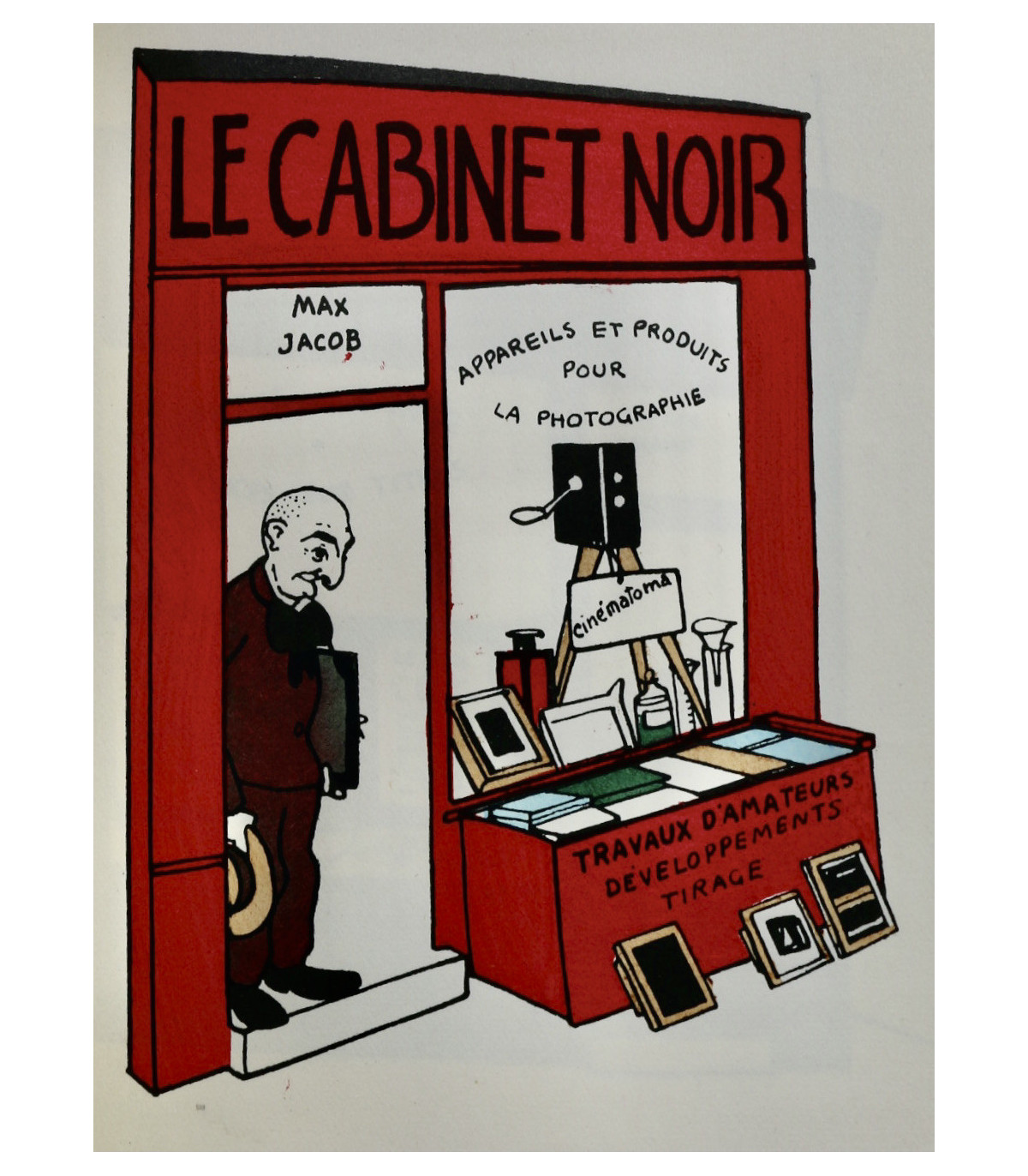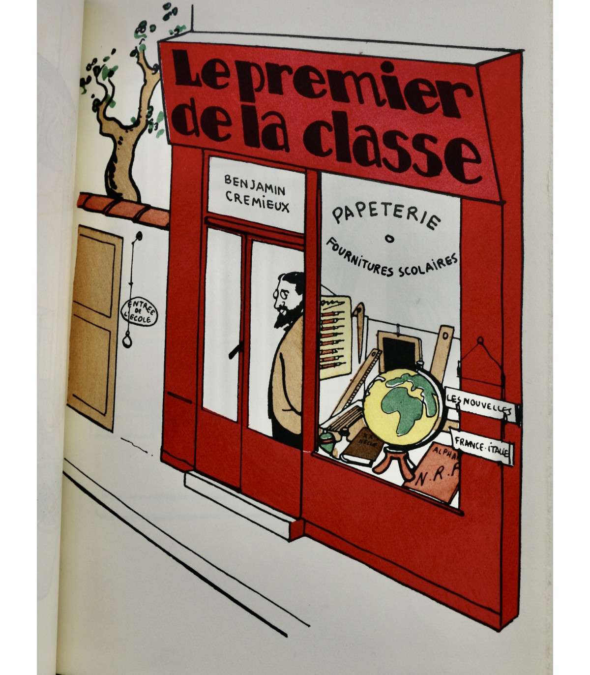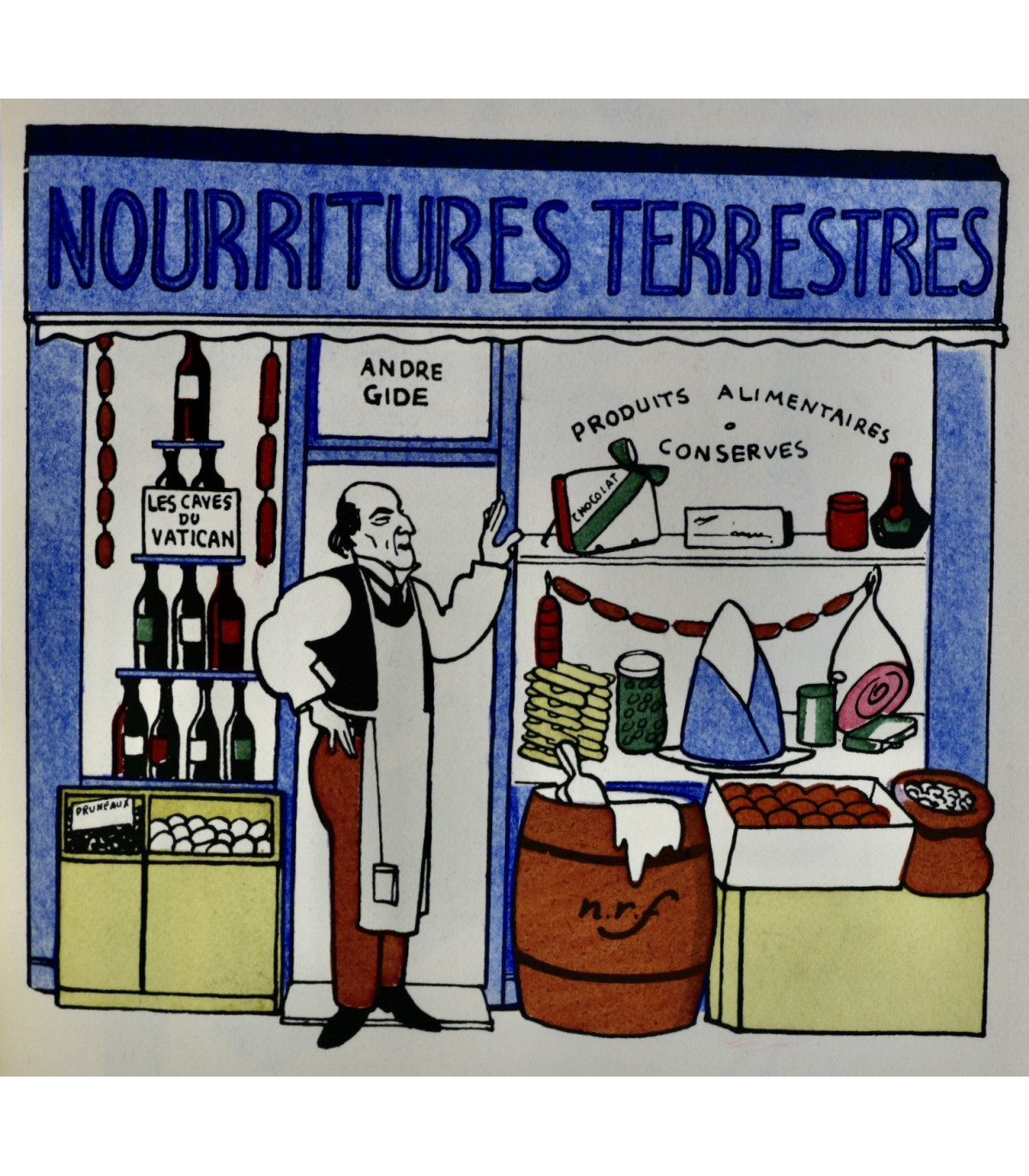 Édition originale illustrée de 62 planches en couleurs par Henri Guilac coloriées au pochoir (dont la couverture). Chaque composition représente un écrivain mis en scène dans sa boutique, dont l’enseigne porte le nom d’un de ses ouvrages. Un des 50 exemplaires numérotés sur Hollande, celui-ci n°26.