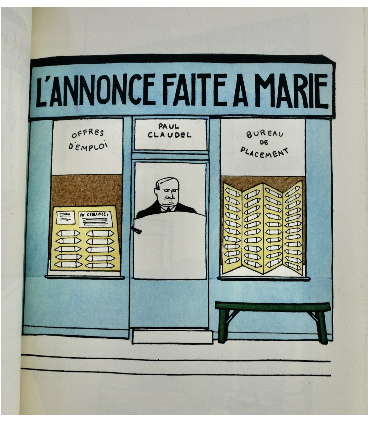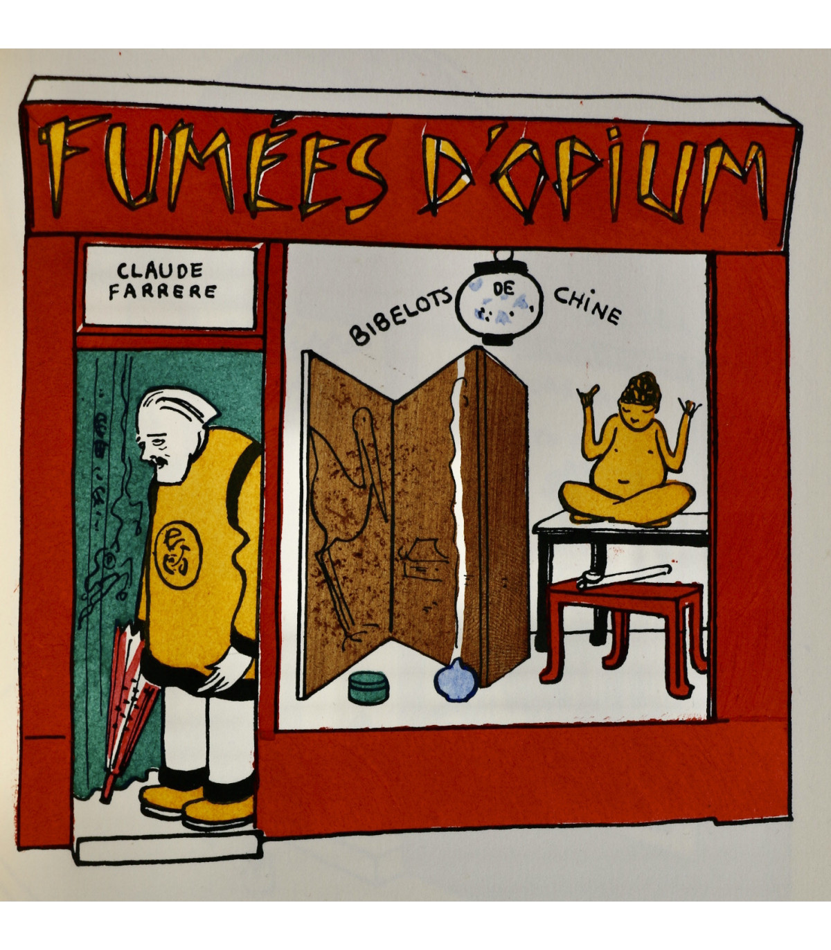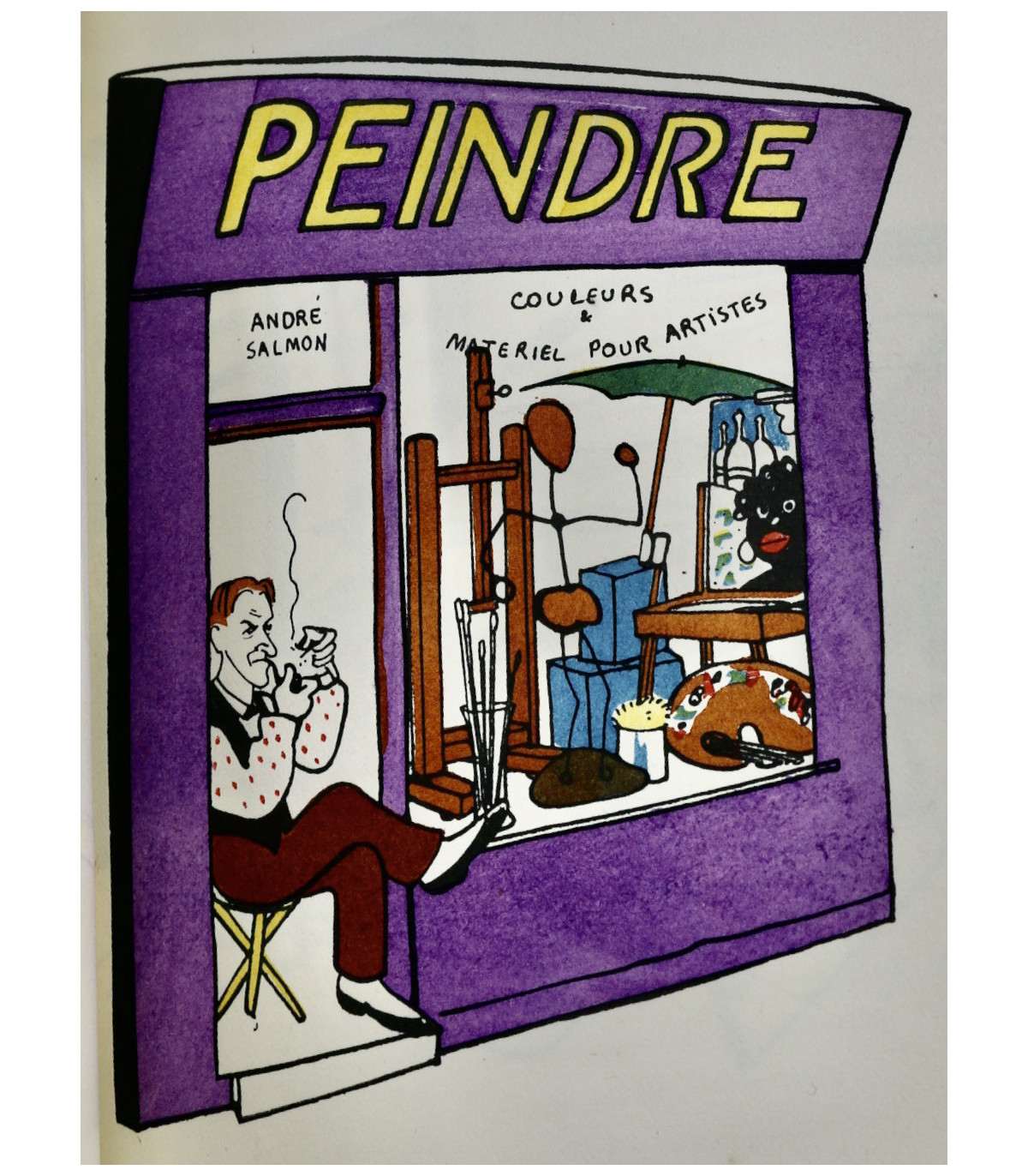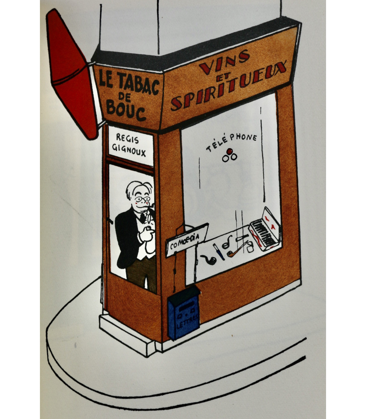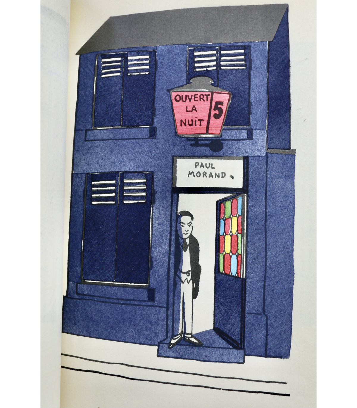 Édition originale illustrée de 62 planches en couleurs par Henri Guilac coloriées au pochoir (dont la couverture). Chaque composition représente un écrivain mis en scène dans sa boutique, dont l’enseigne porte le nom d’un de ses ouvrages. Un des 50 exemplaires numérotés sur Hollande, celui-ci n°26.